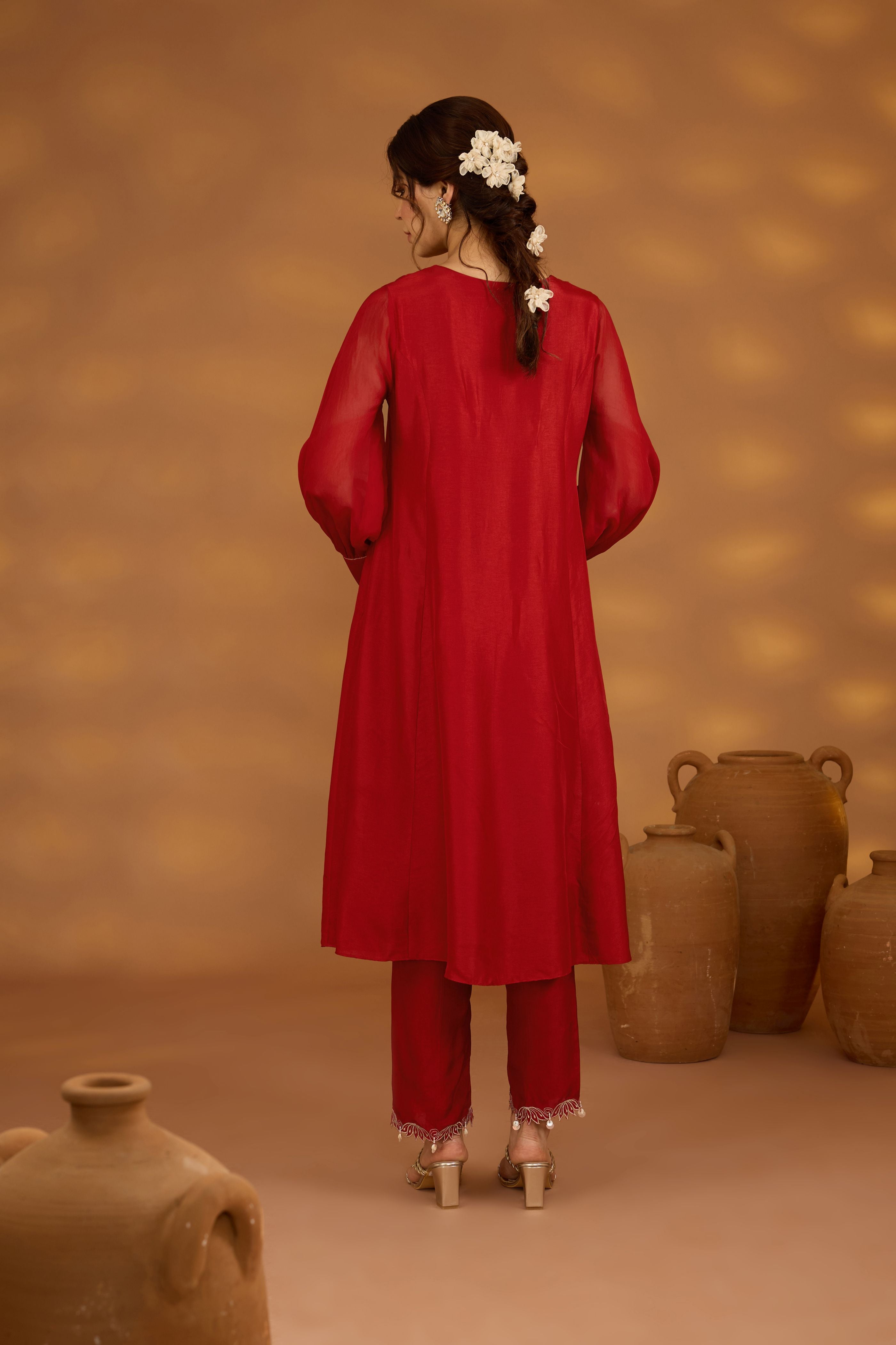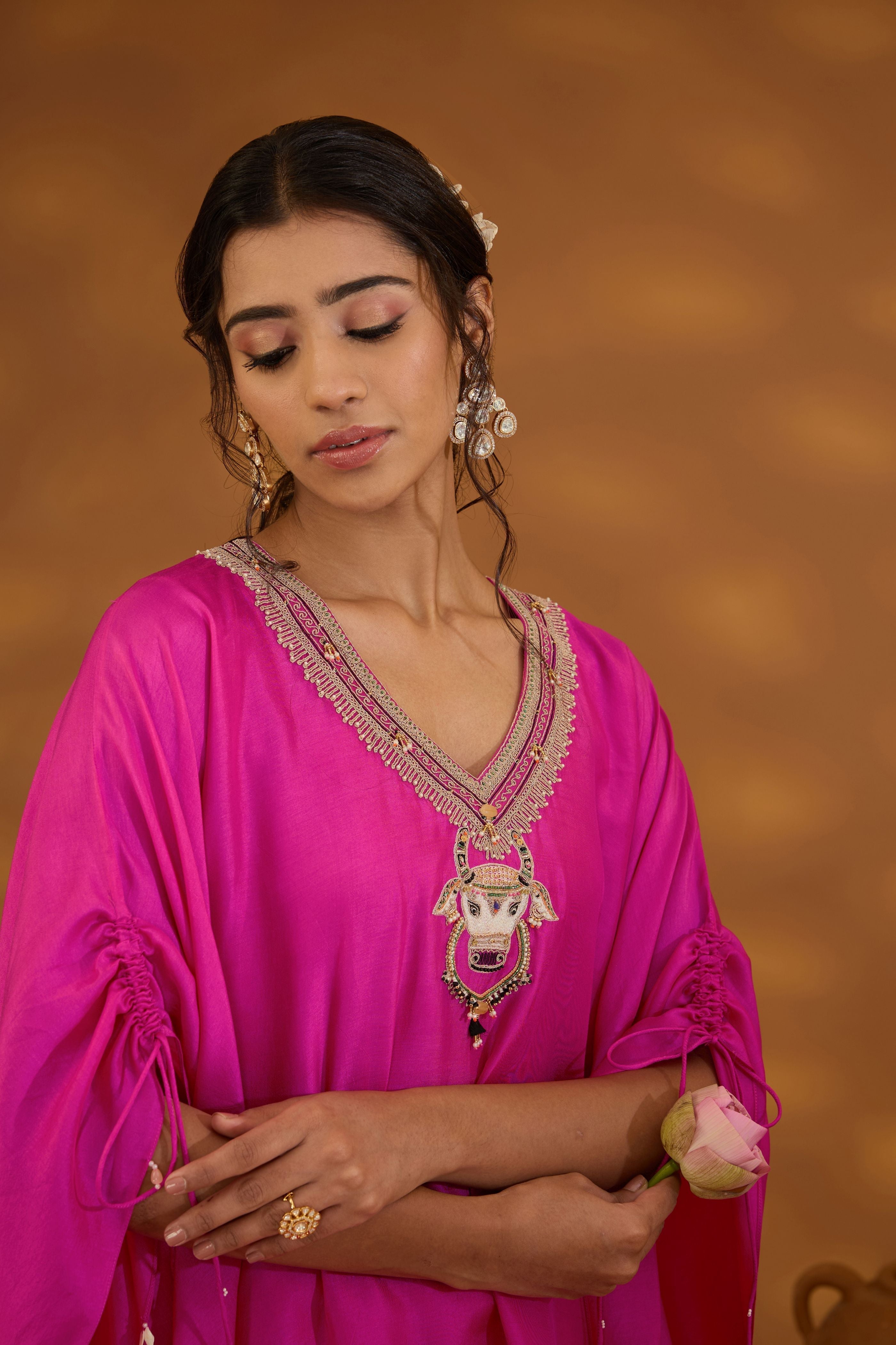Shyaamras Mocha Pink Silk Embroidered Kurta Set