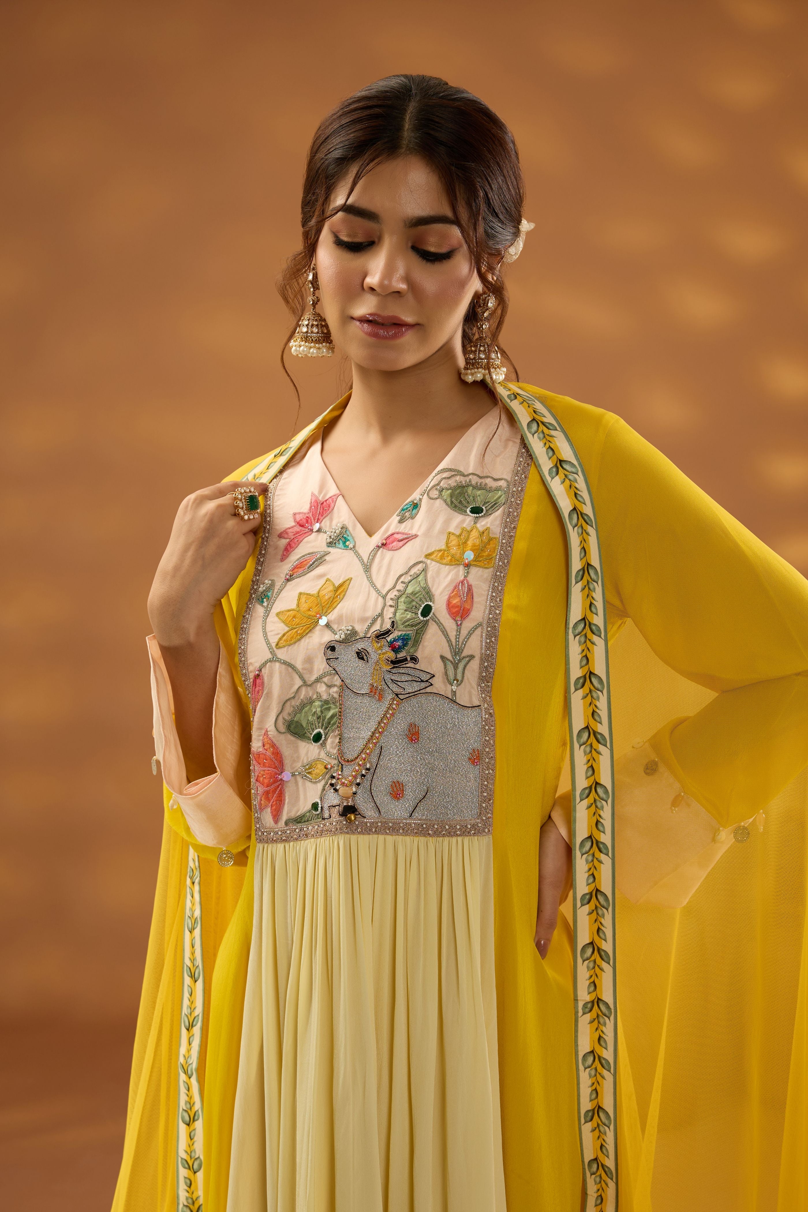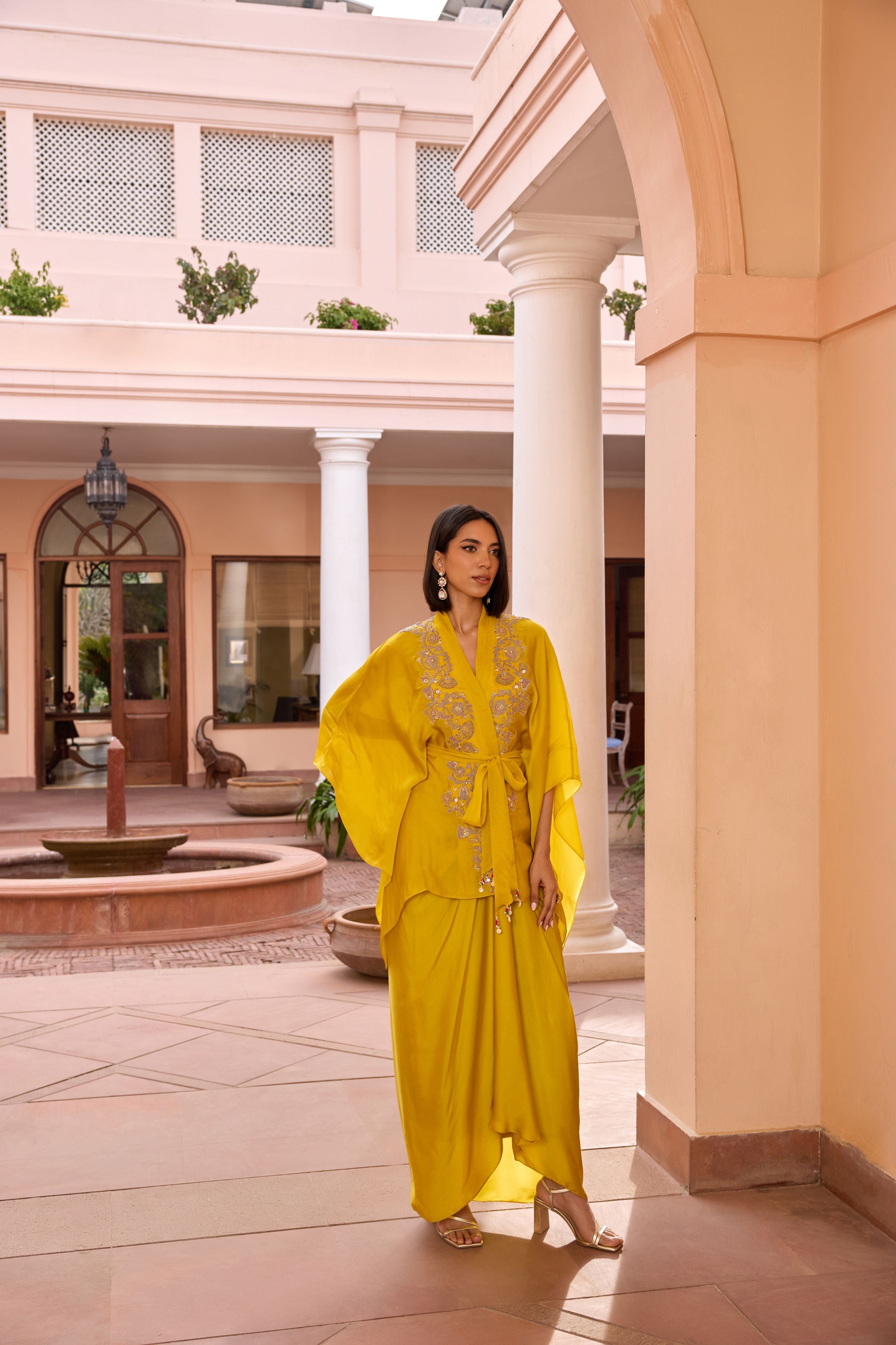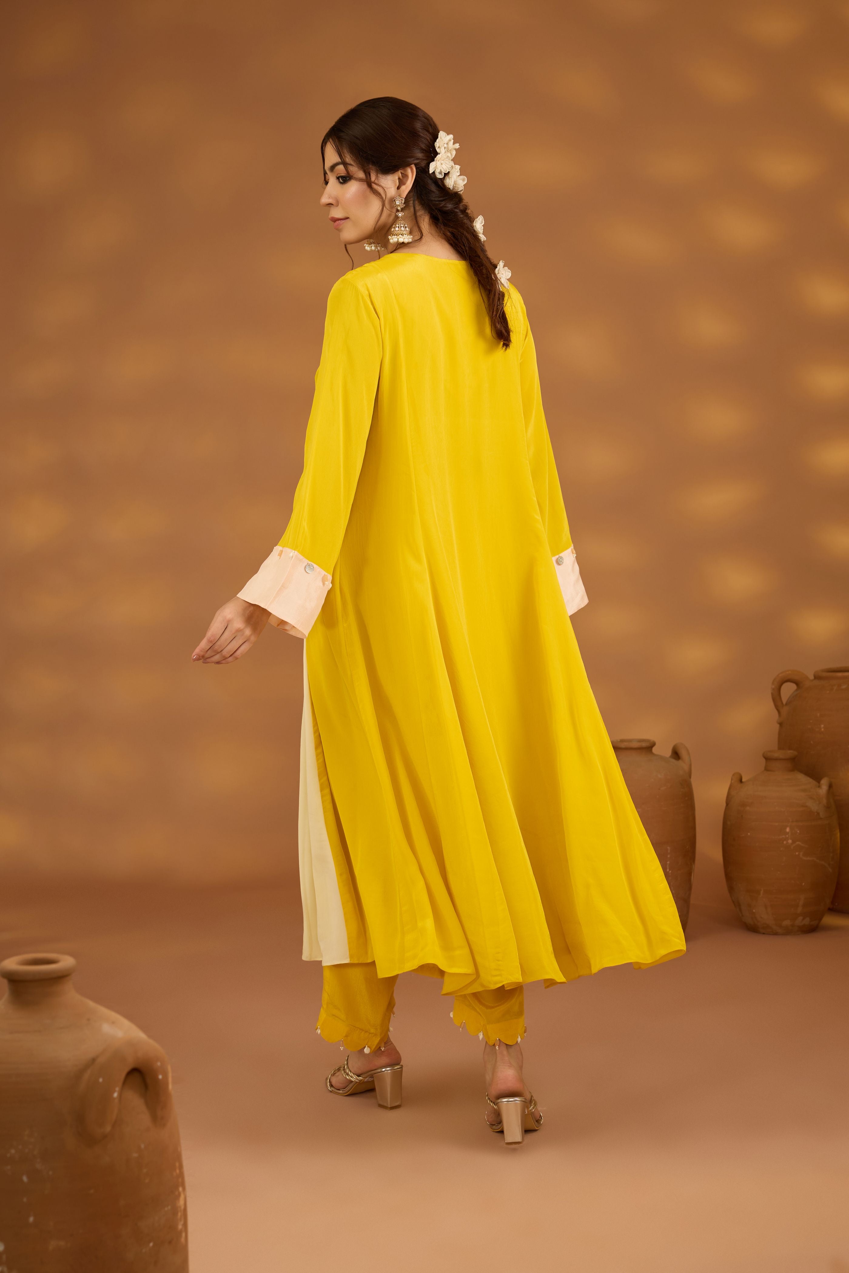 Ambar Golden Yellow Silk Embroidered Kurta Set
