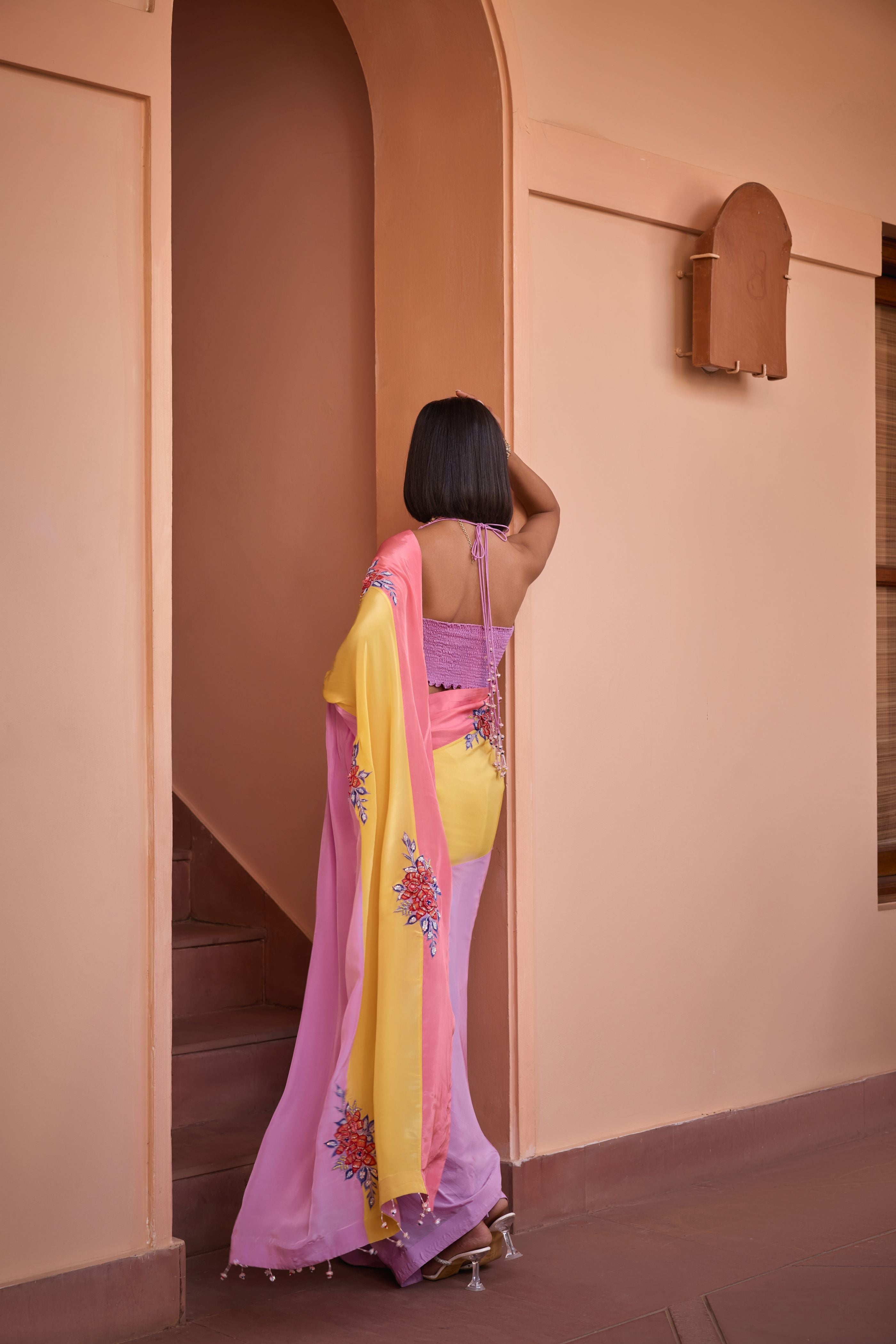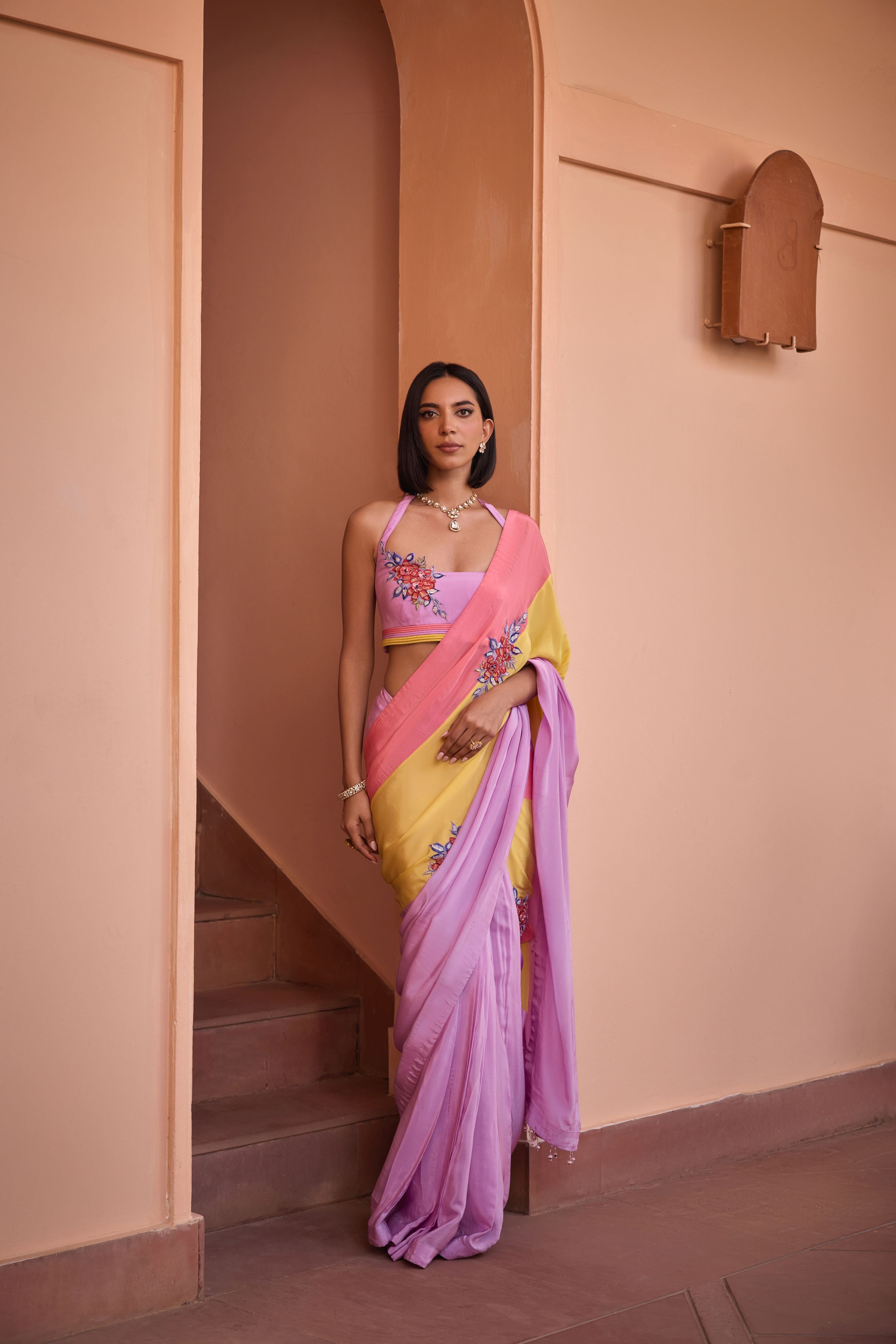 Sakshi Sindwani in Yellow printed embroidered saree set