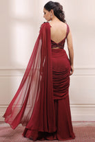 Ruby red draped saree set