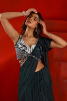 Midnight green drape concept saree set