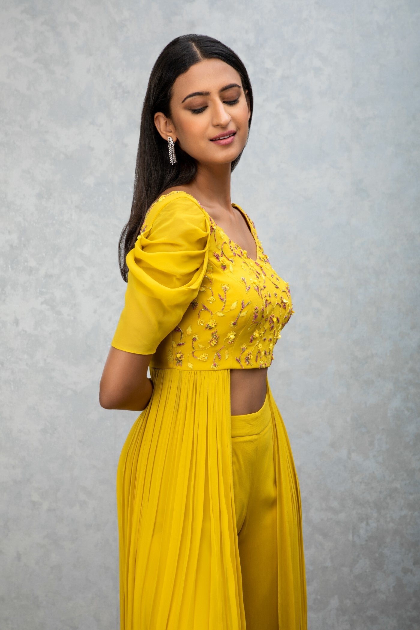 Ambar Golden Yellow Silk Embroidered Kurta Set