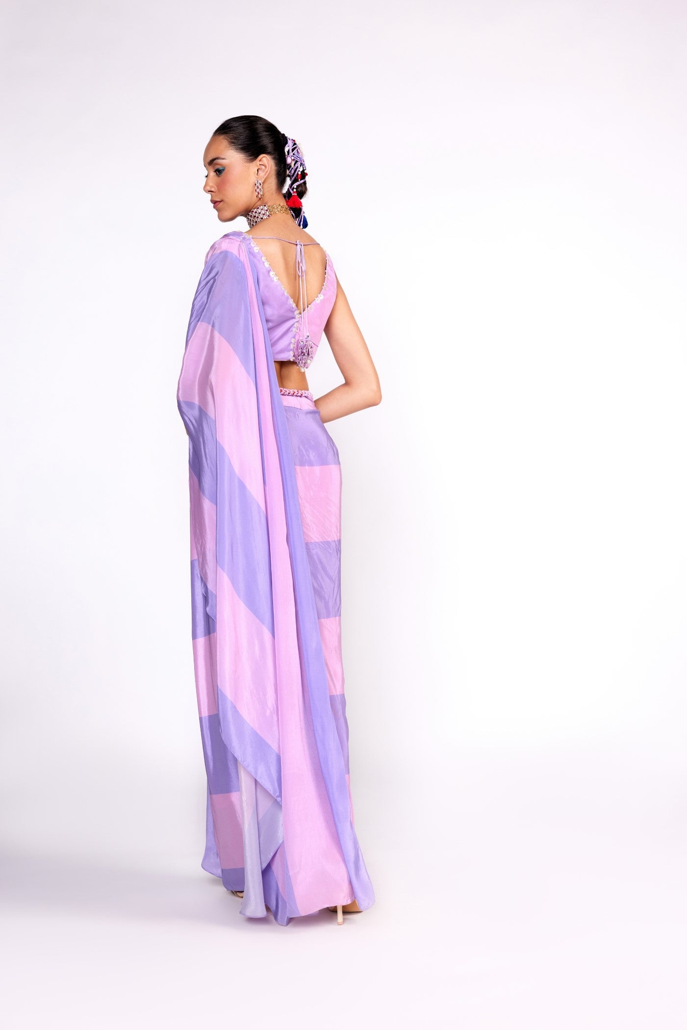 Lilac color block embroidrerd drape saree