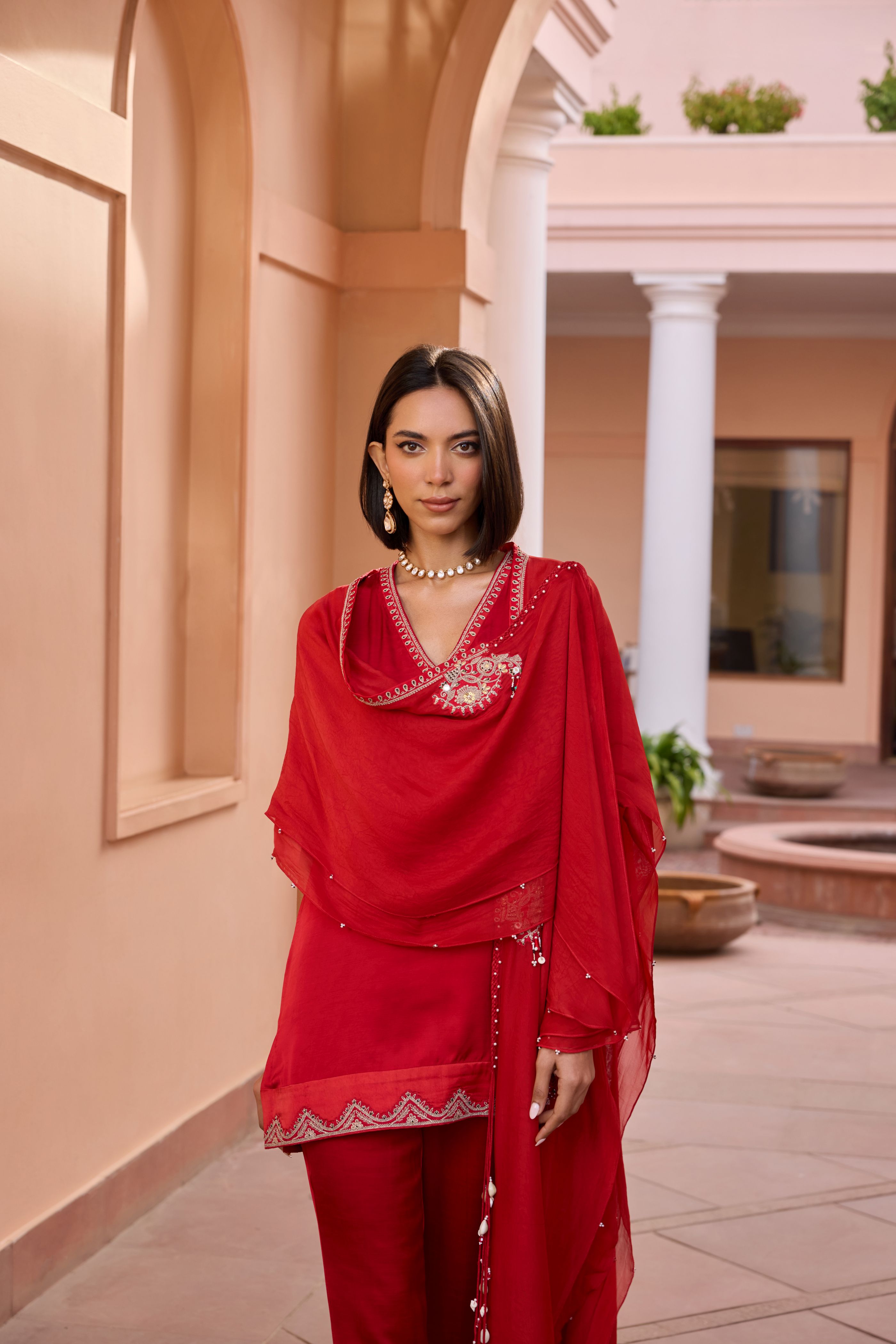 Shyaamras Mocha Pink Silk Embroidered Kurta Set