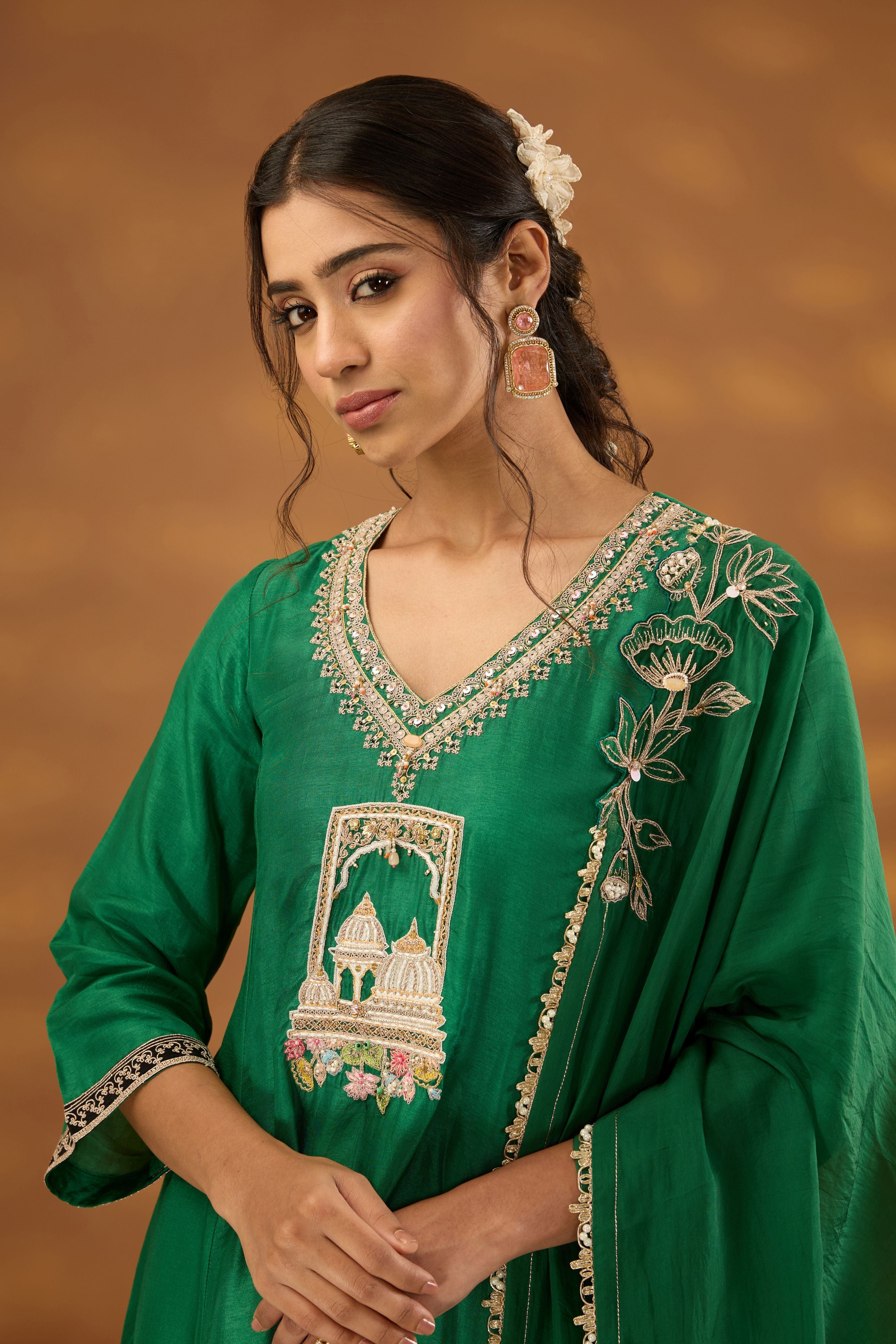 Rumi Powder Blue Silk Embroidered Kurta Set