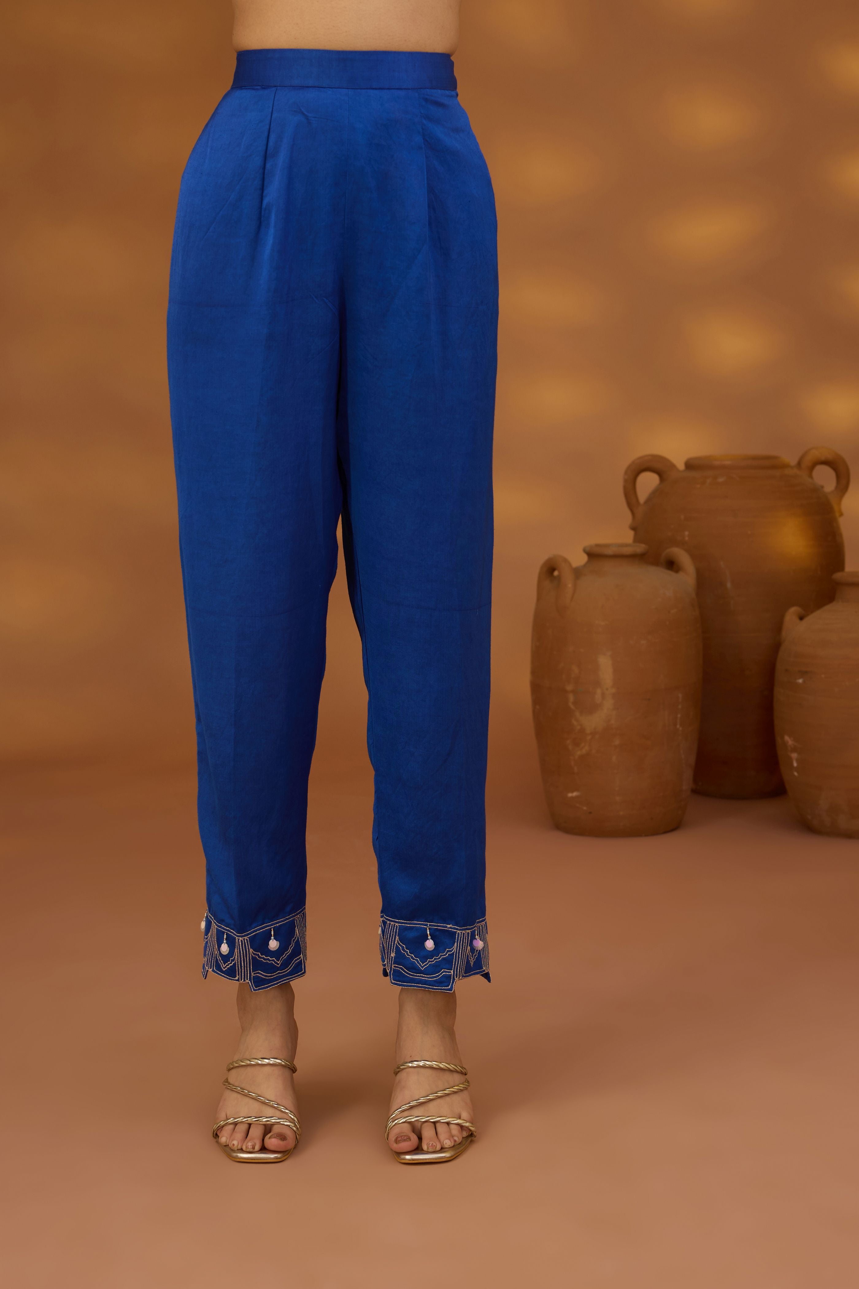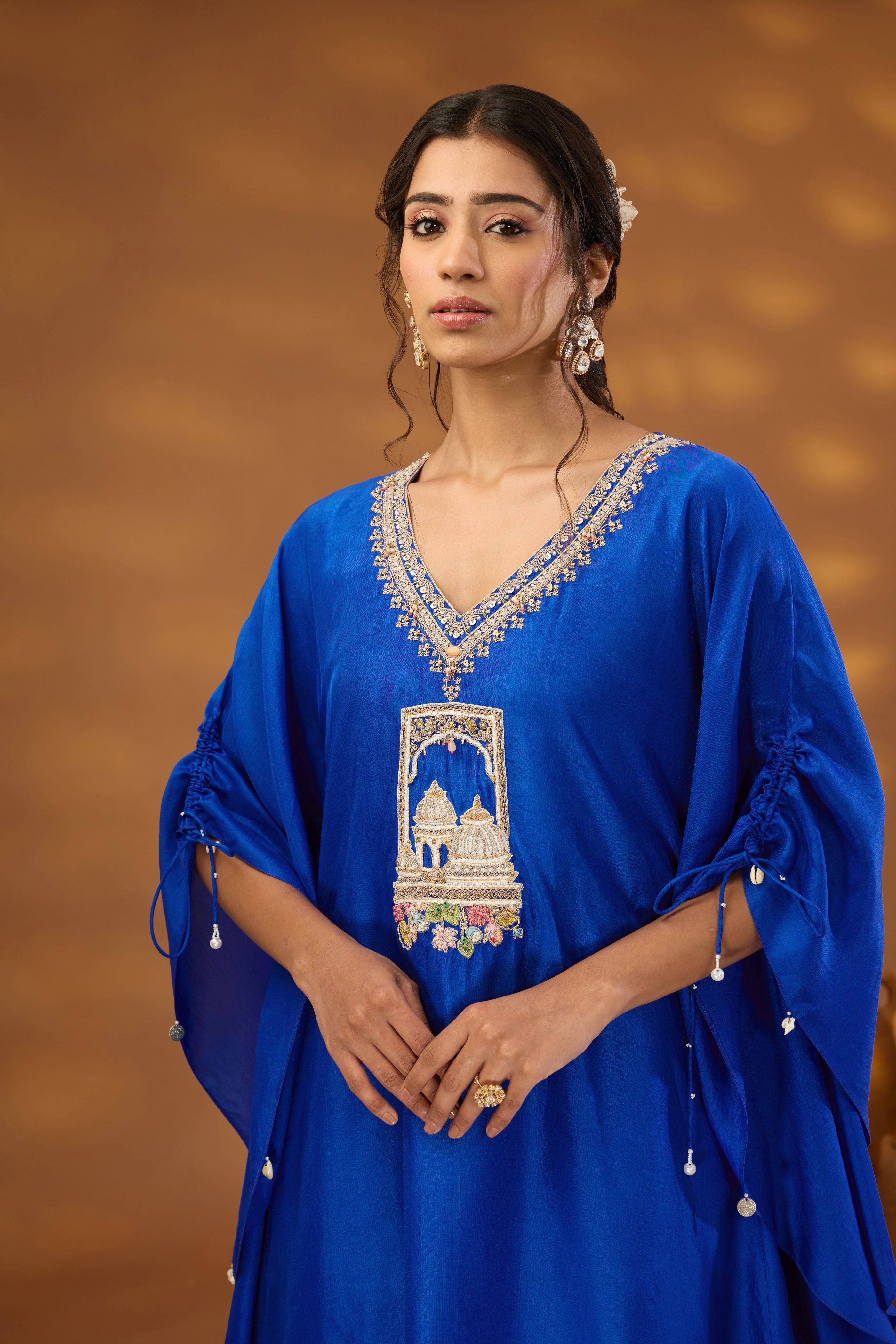Zeenat Powder Blue Chanderi Asymmetric Kurta Set