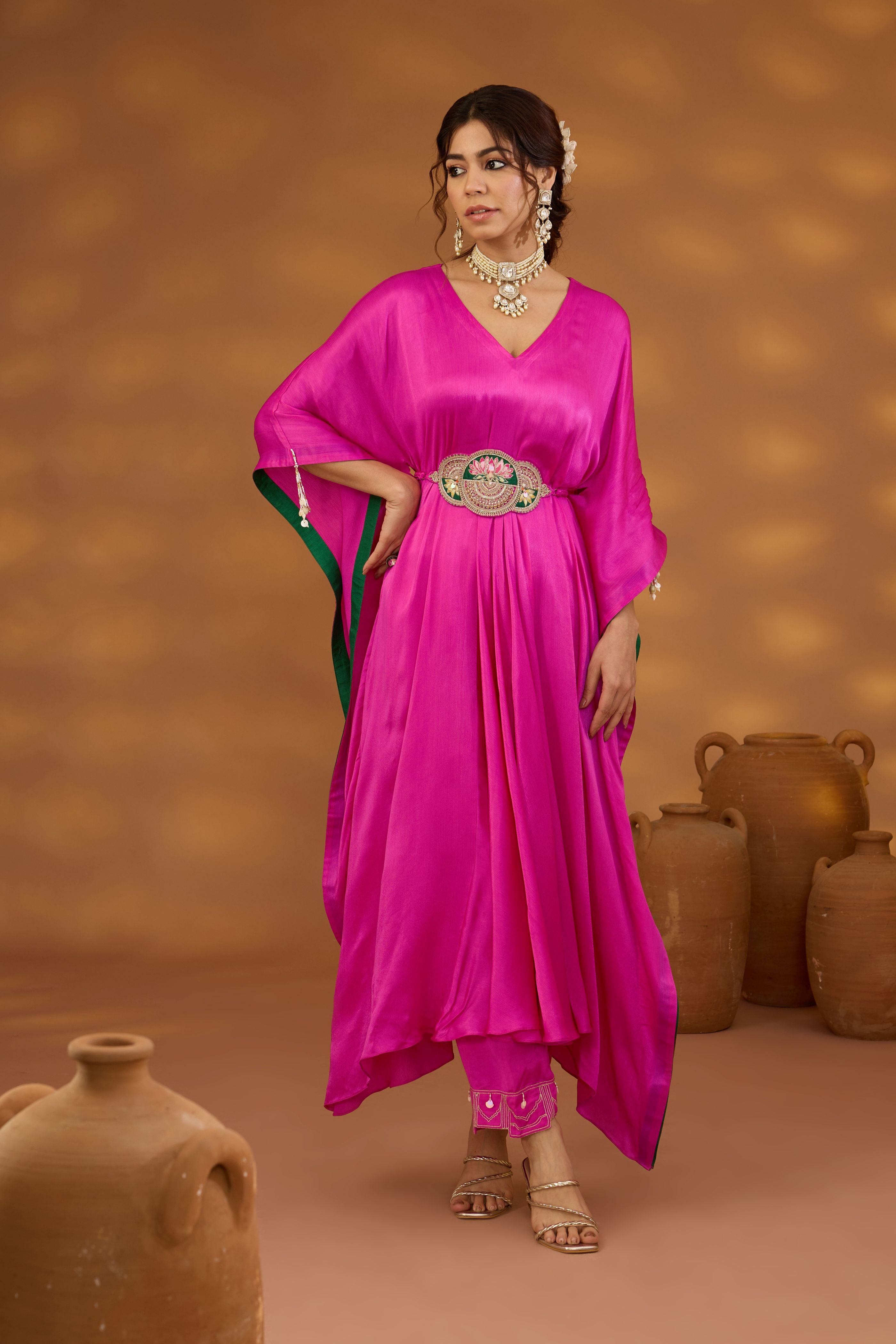 Shyaamras Mocha Pink Silk Embroidered Kurta Set