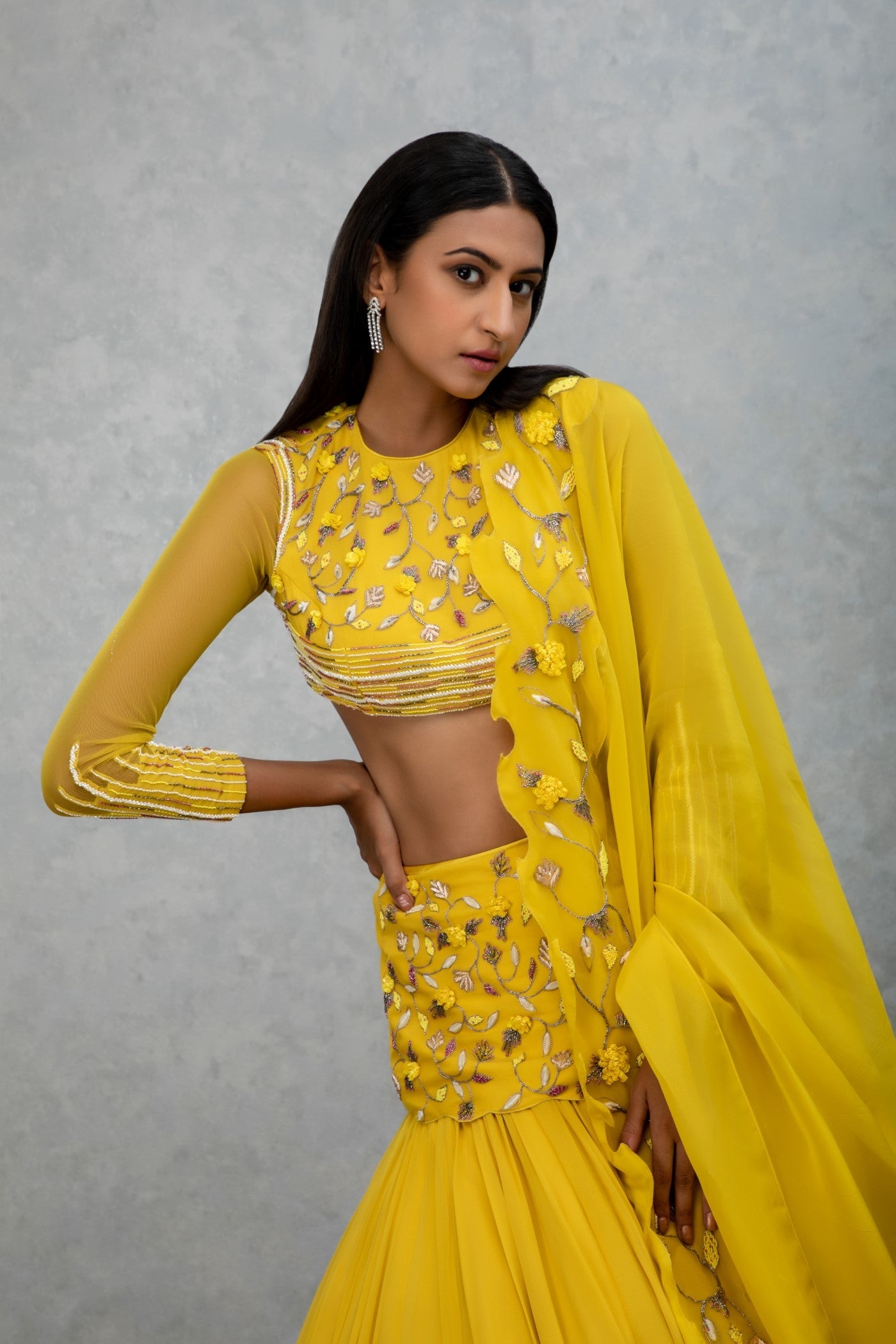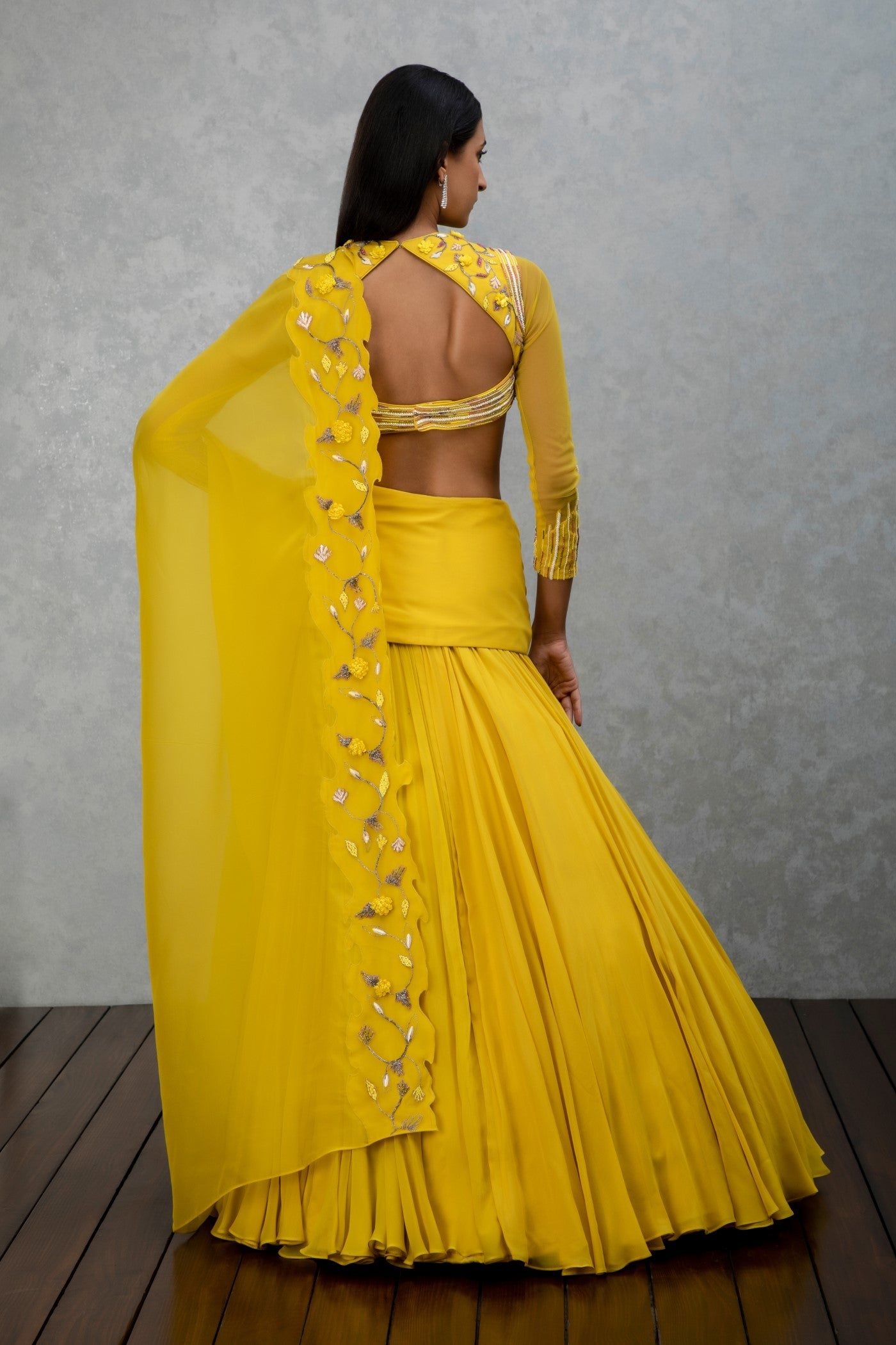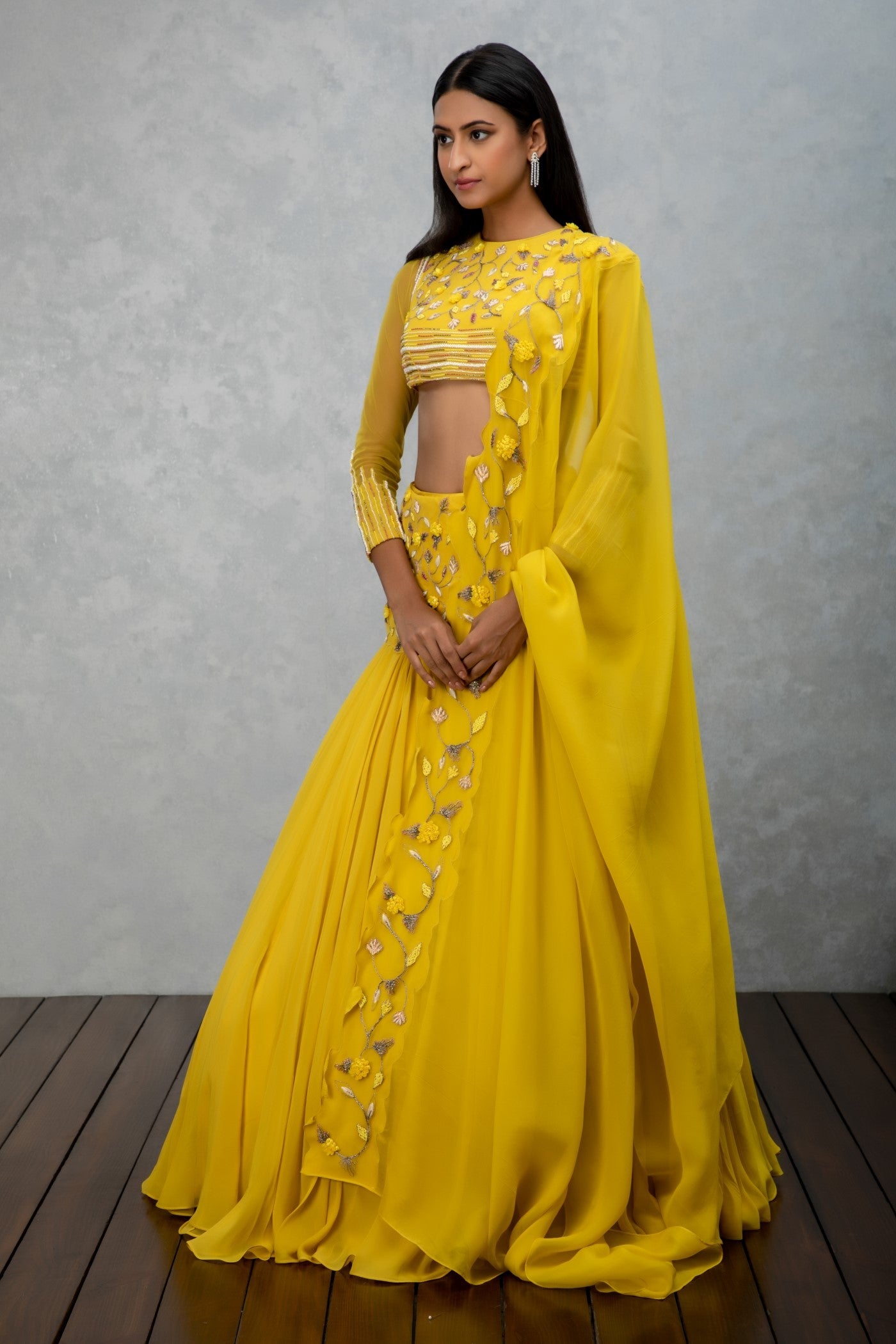 Citrine yellow georgette and organza lehenga set