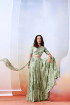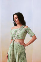 Sage green printed and embroidered sharara set