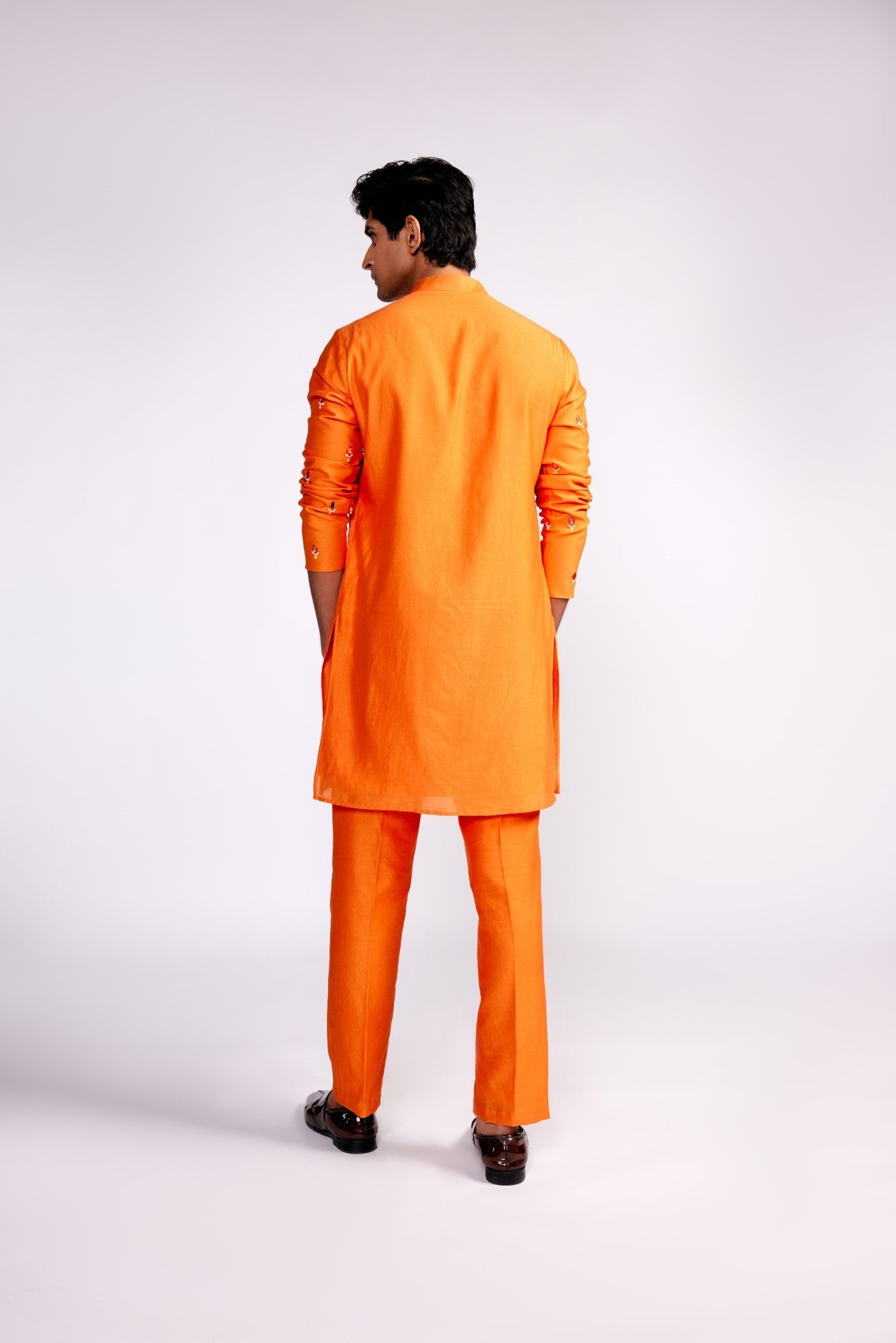 Orange embroidered silk kurta set