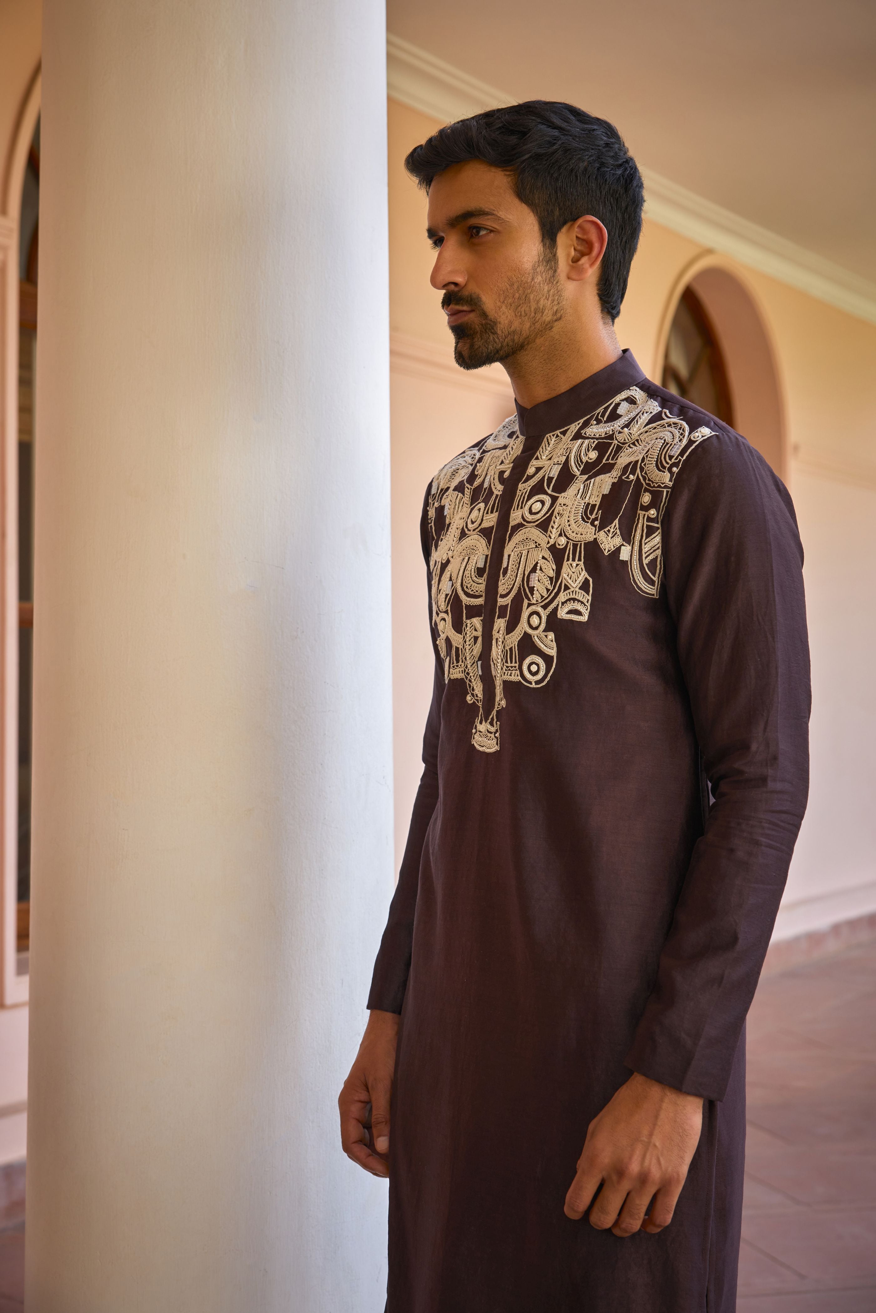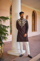 Brown dori and hand embroidered silk kurta set