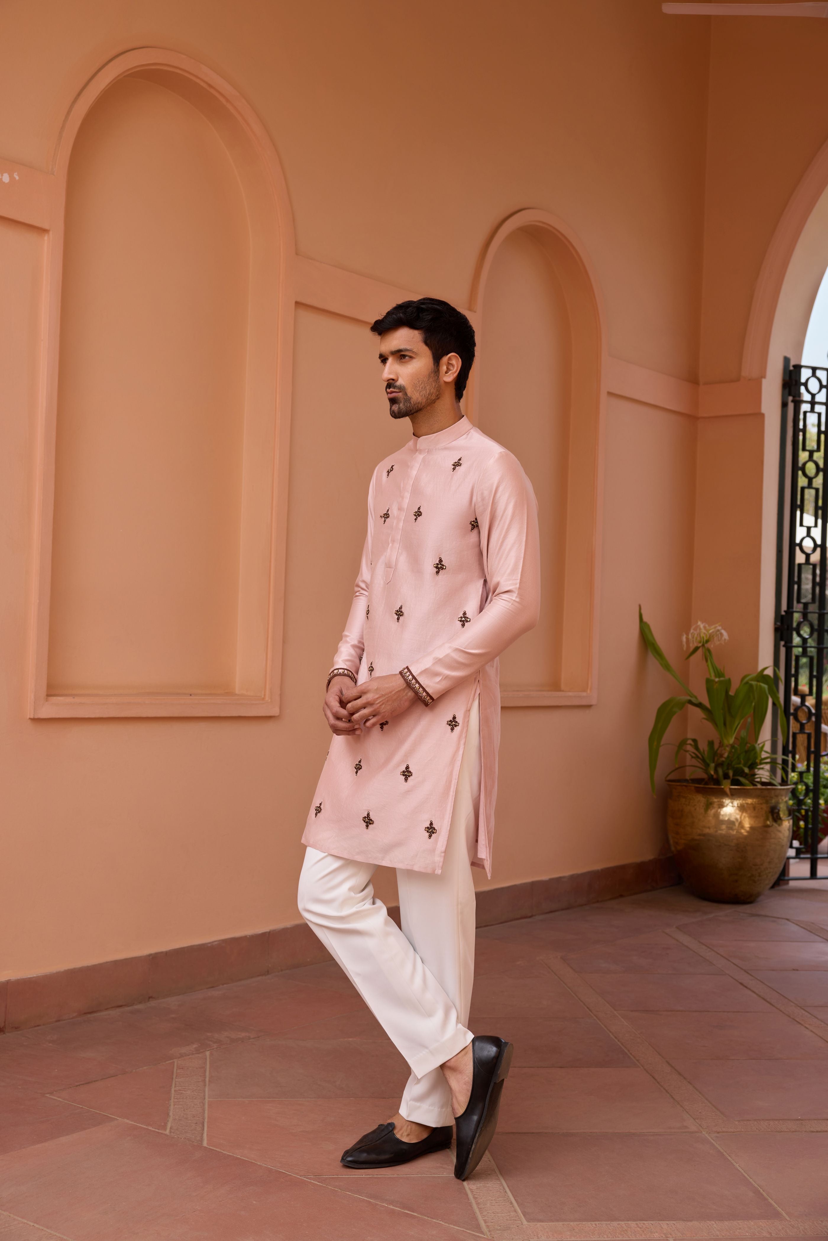 Featuring an understated kurta made in pure silk chanderi embroidered with subtle dori marodi work. It is paired with front fly and back elasticated tailored pants including pocket.Perfect effortless wear for any occassion or festive look.