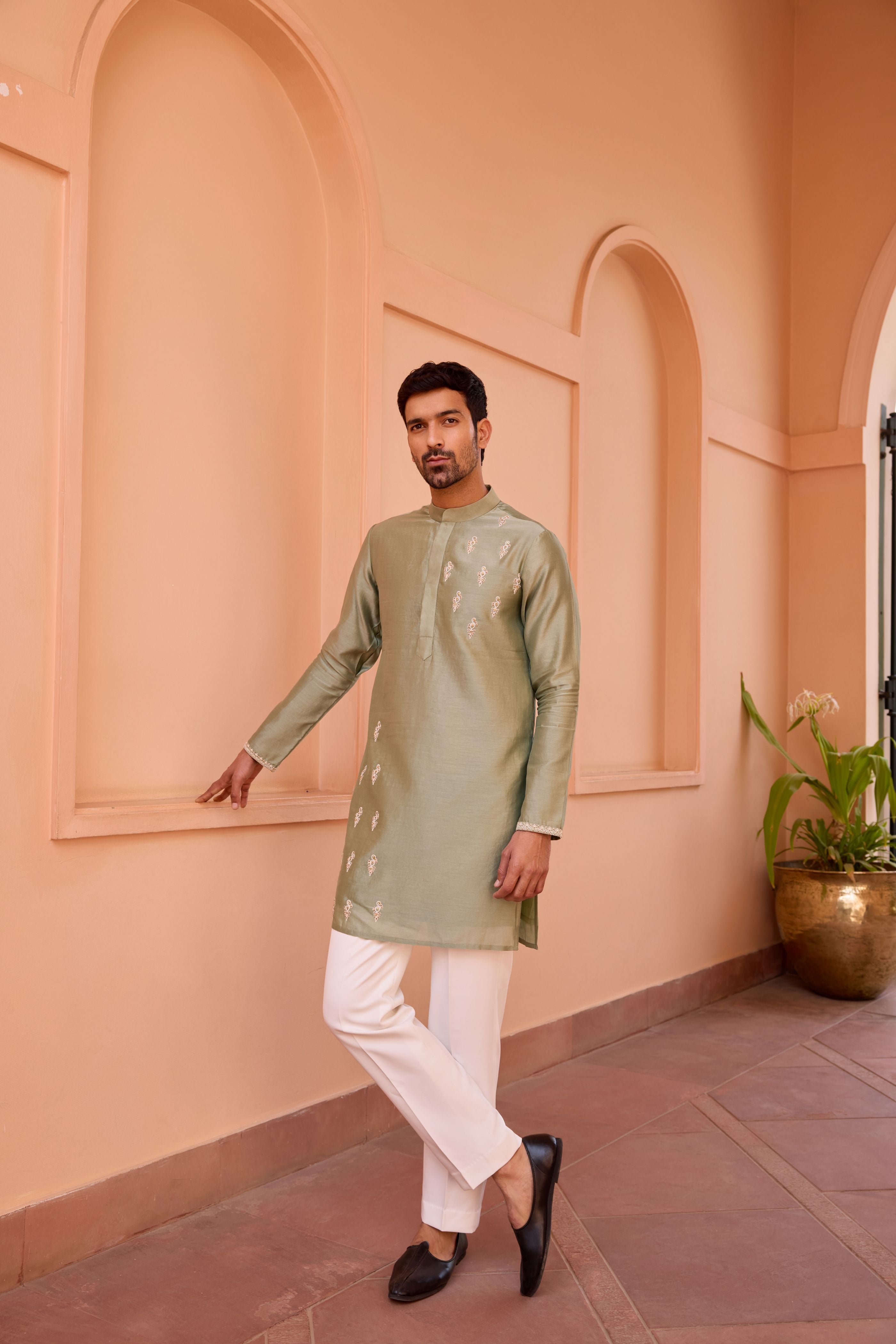 Featuring an understated kurta made in pure silk chanderi embroidered with subtle dori marodi work Perfect wear for any occasion or festive look.