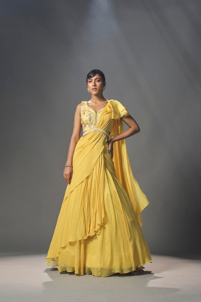 Ambar Golden Yellow Silk Embroidered Kurta Set