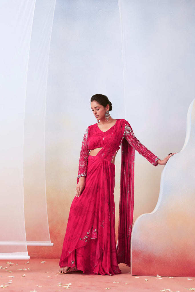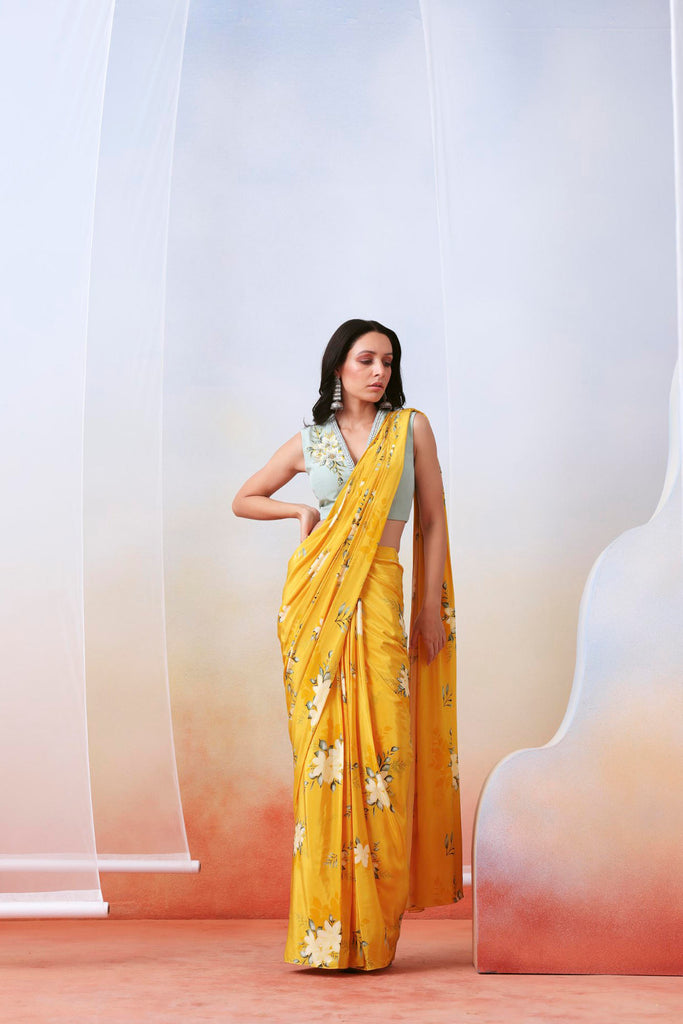 Natasha Luthra in Lilac color block embroidered organza saree set