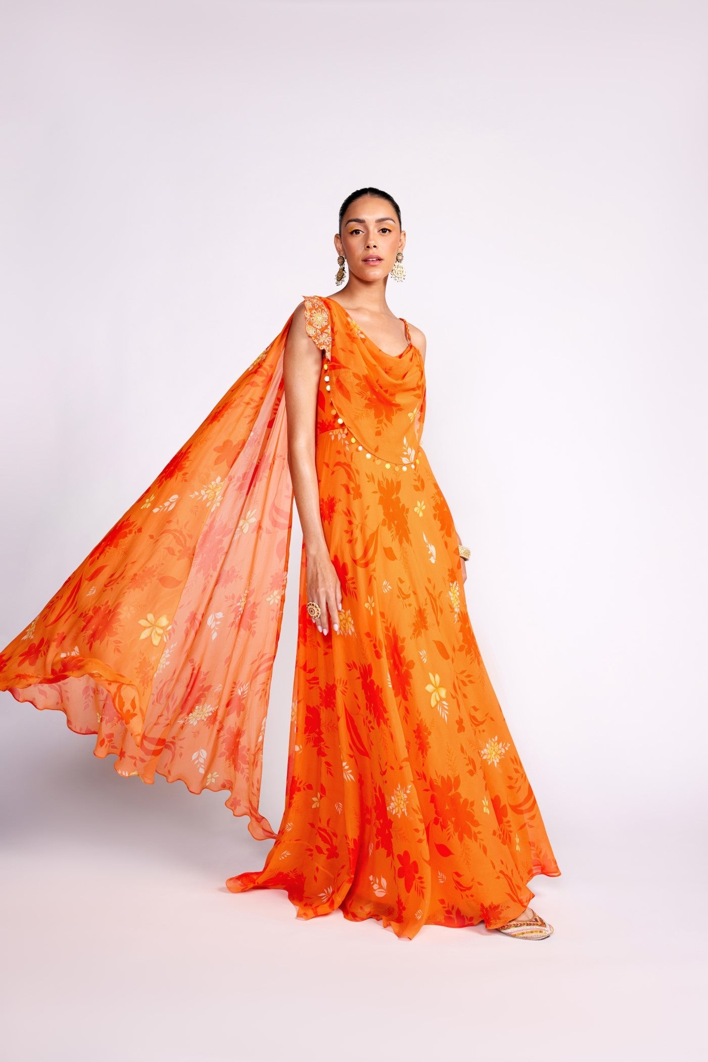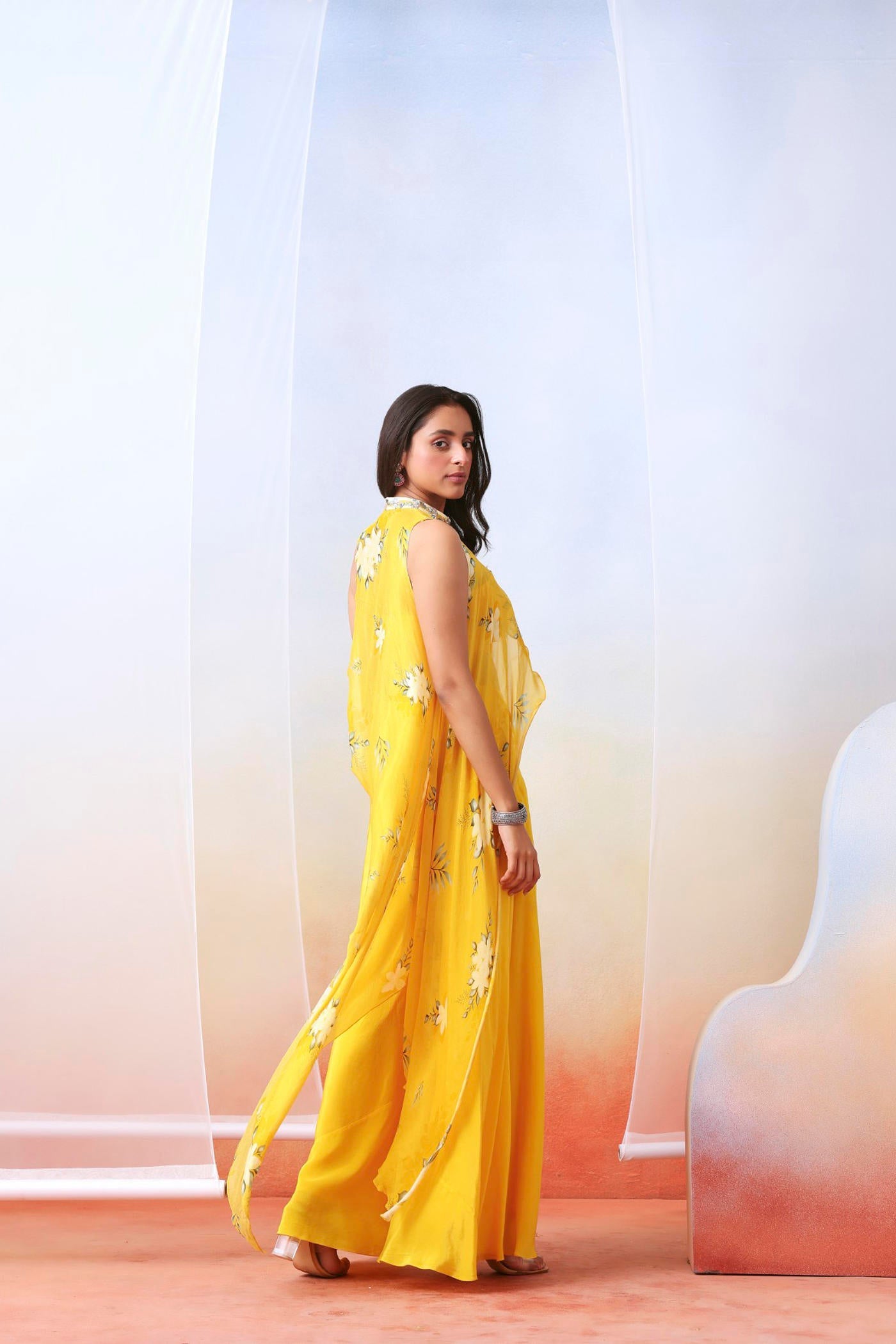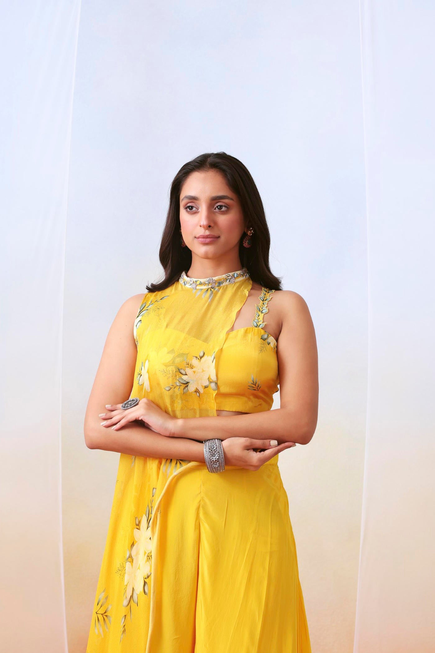 Ghazal Mustard Gold Chanderi Asymmetric Kurta Set