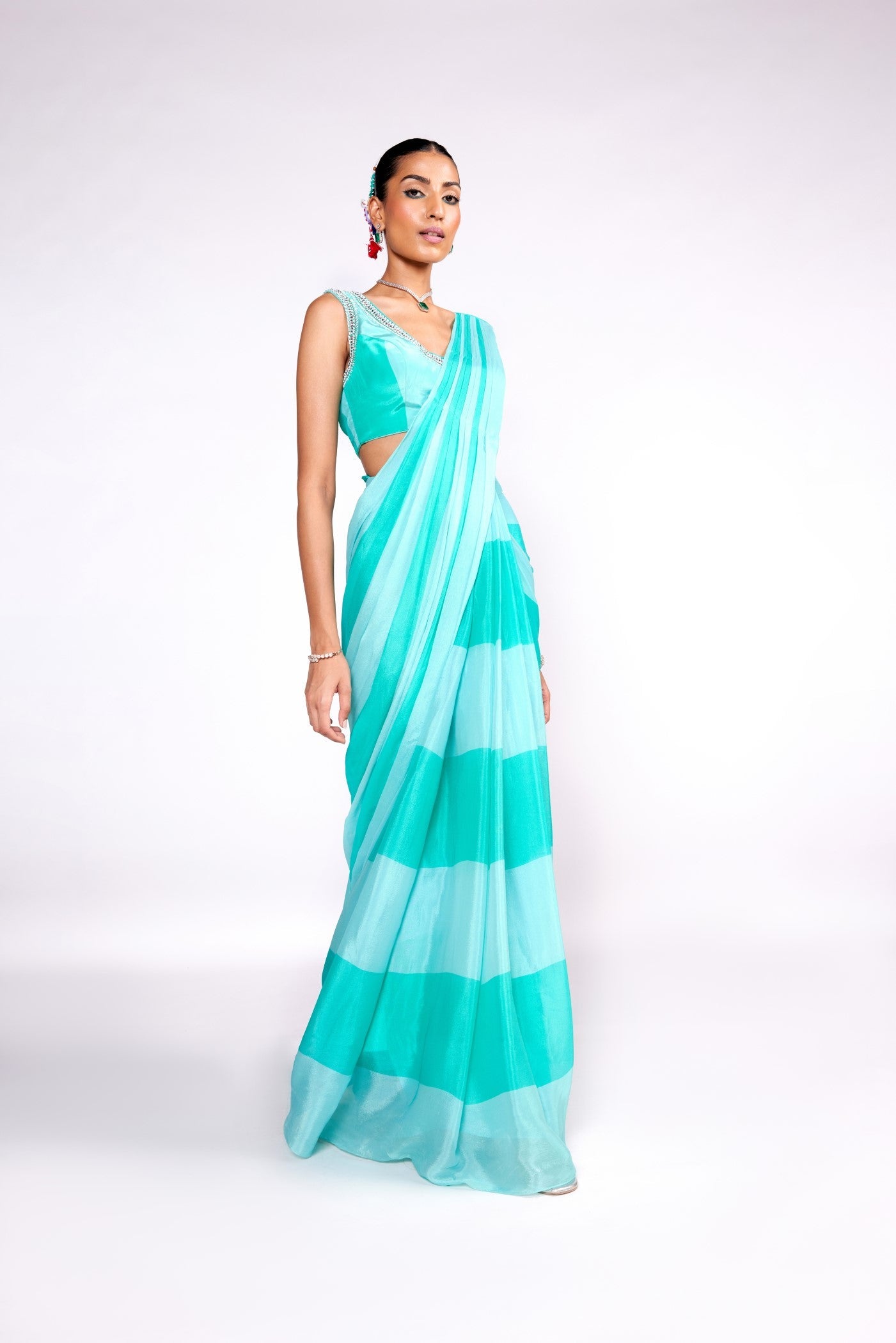 Natasha Luthra in Aqua green embroidered silk lehenga set
