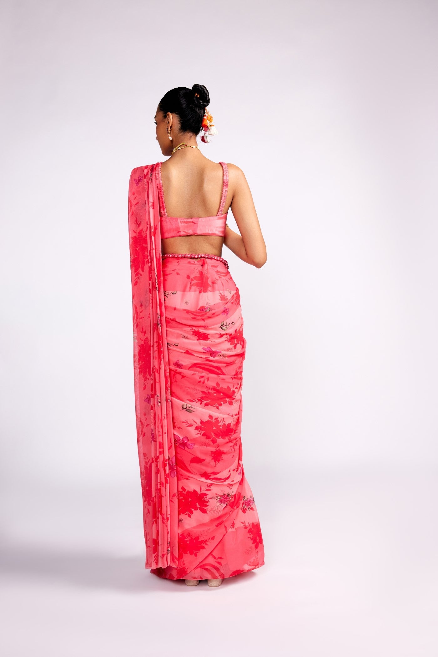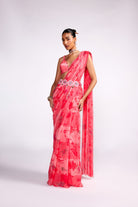 Watermelon pink pre drape saree set