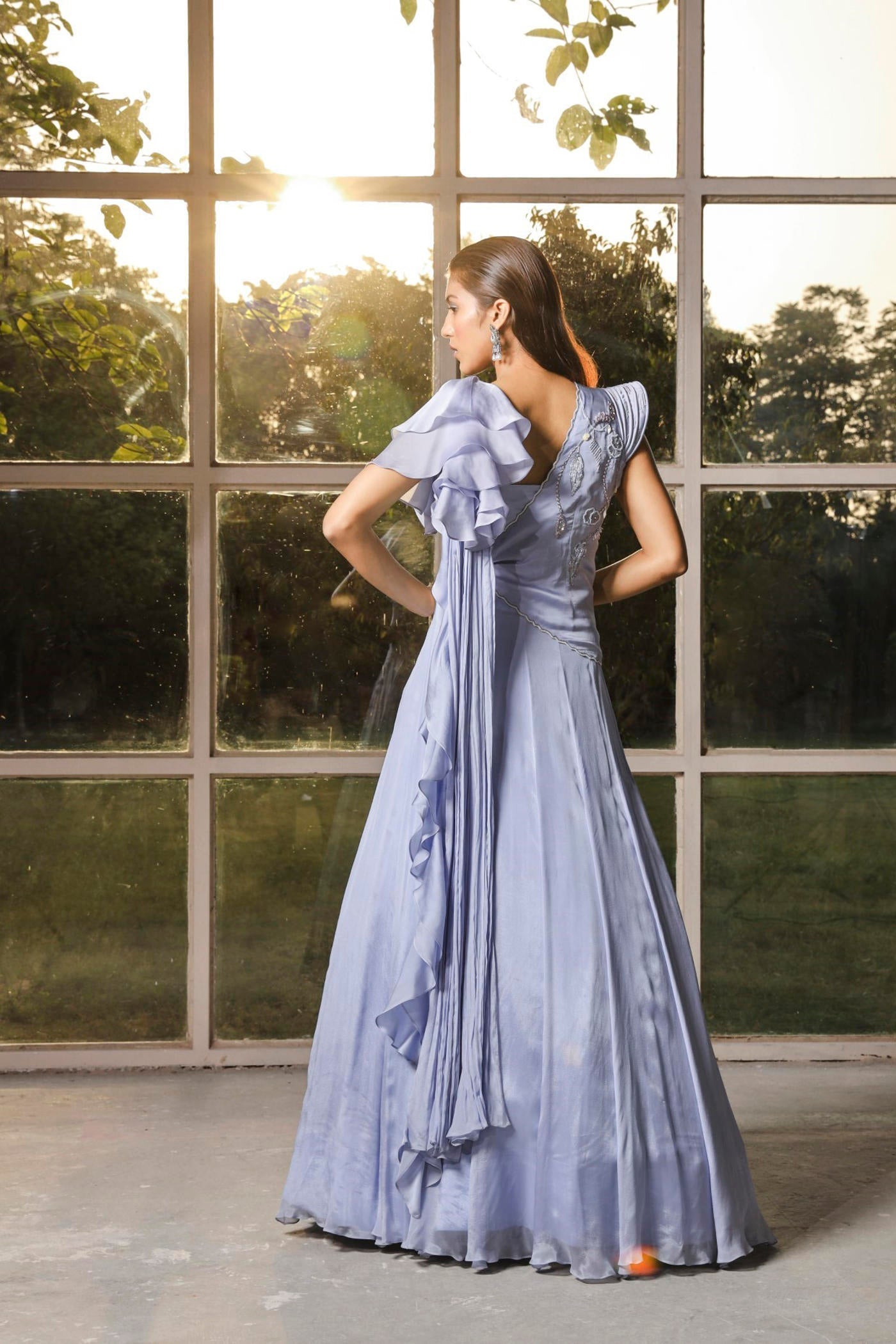 Jashn Powder Blue Crepe Peplum Co-Ord Set