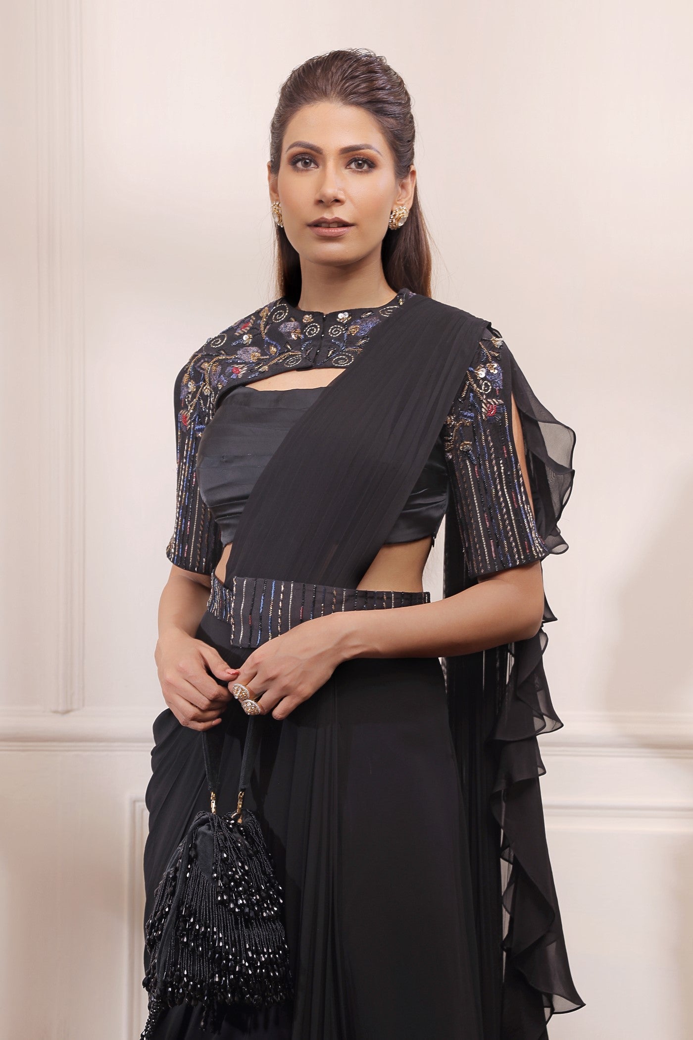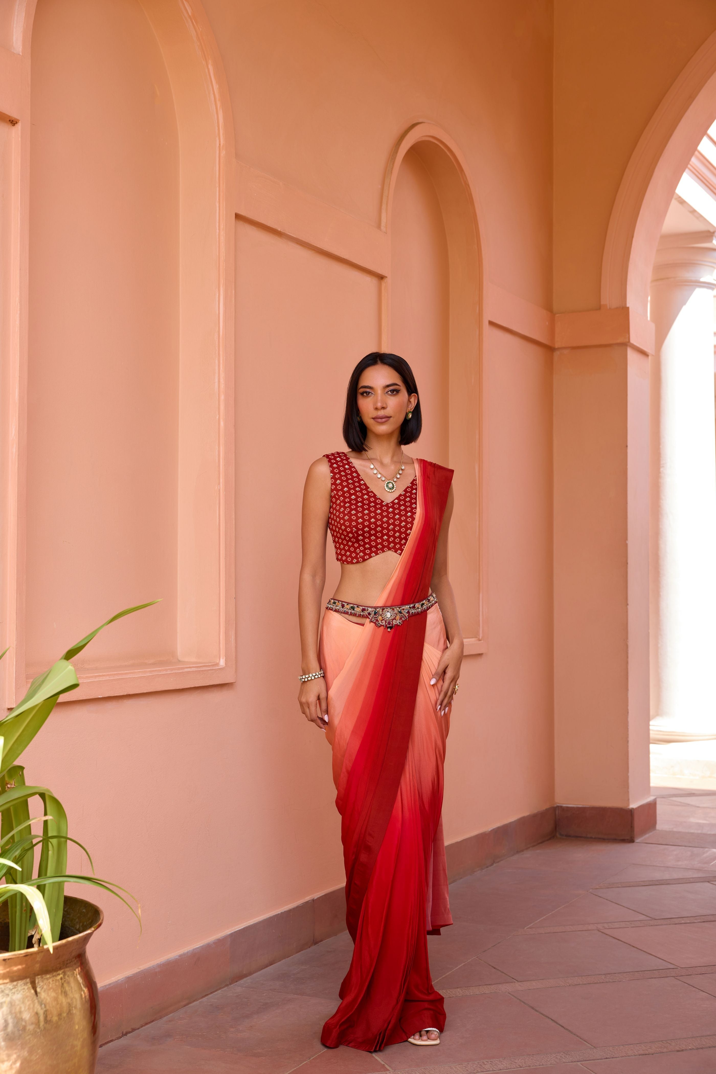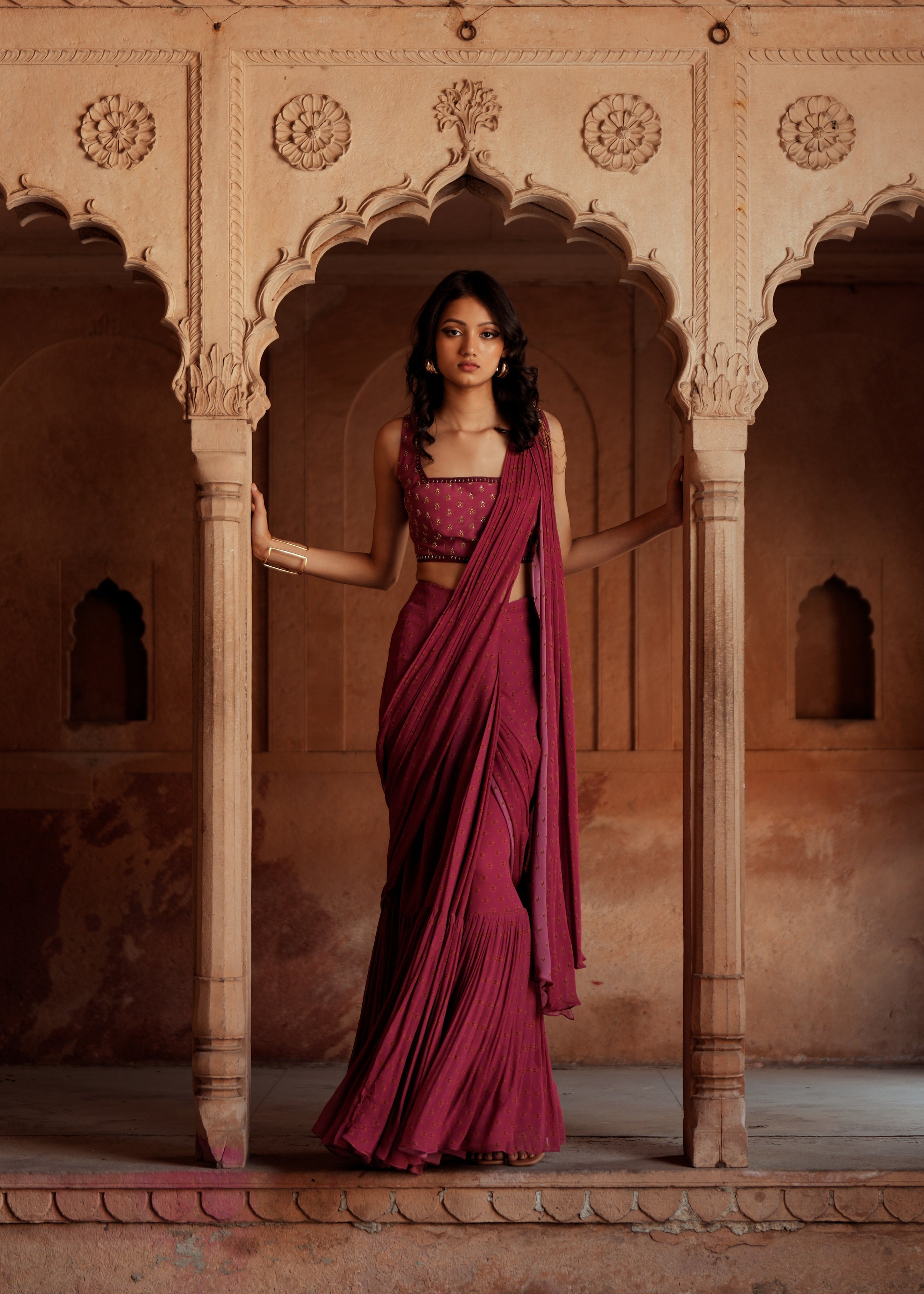 Natasha Luthra in Lilac color block embroidered organza saree set
