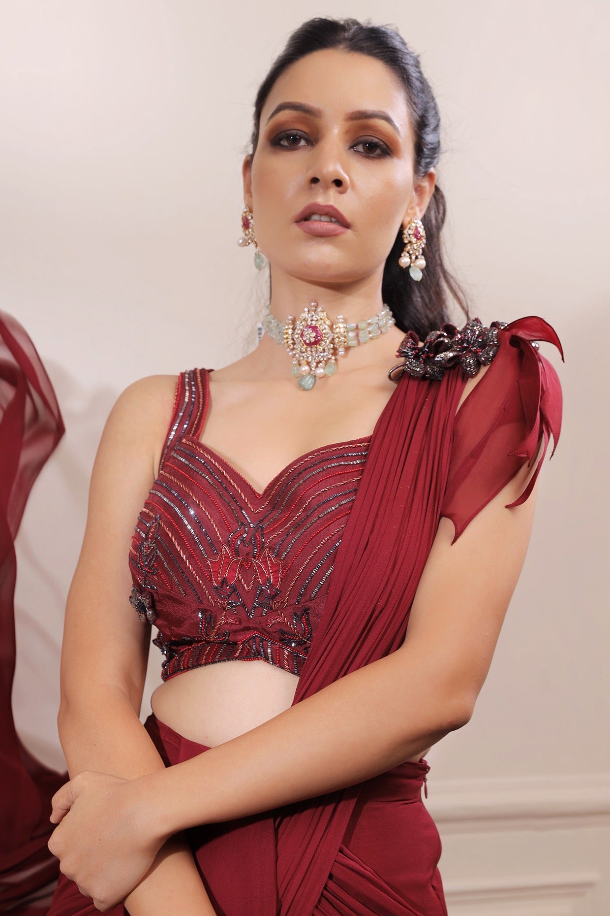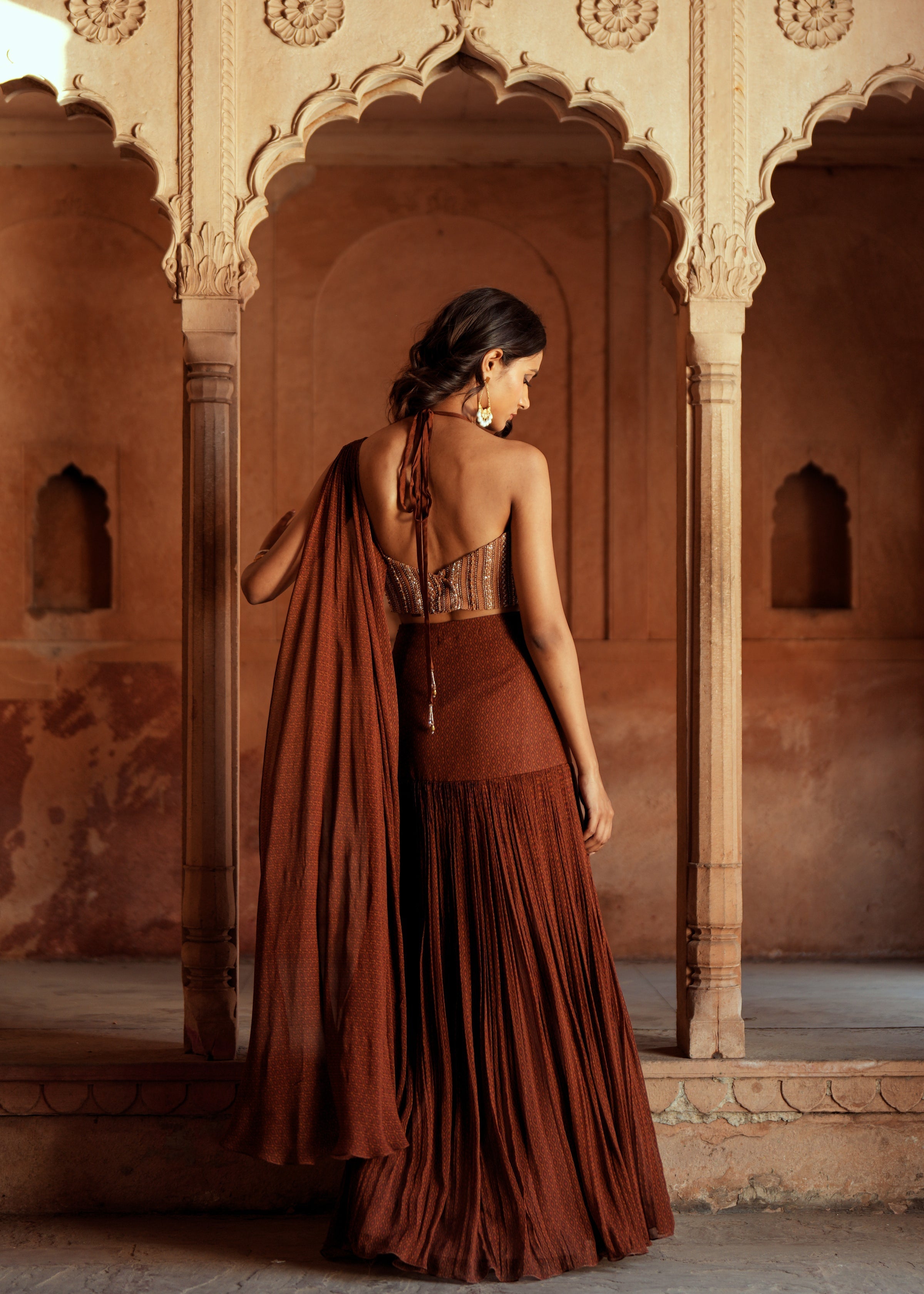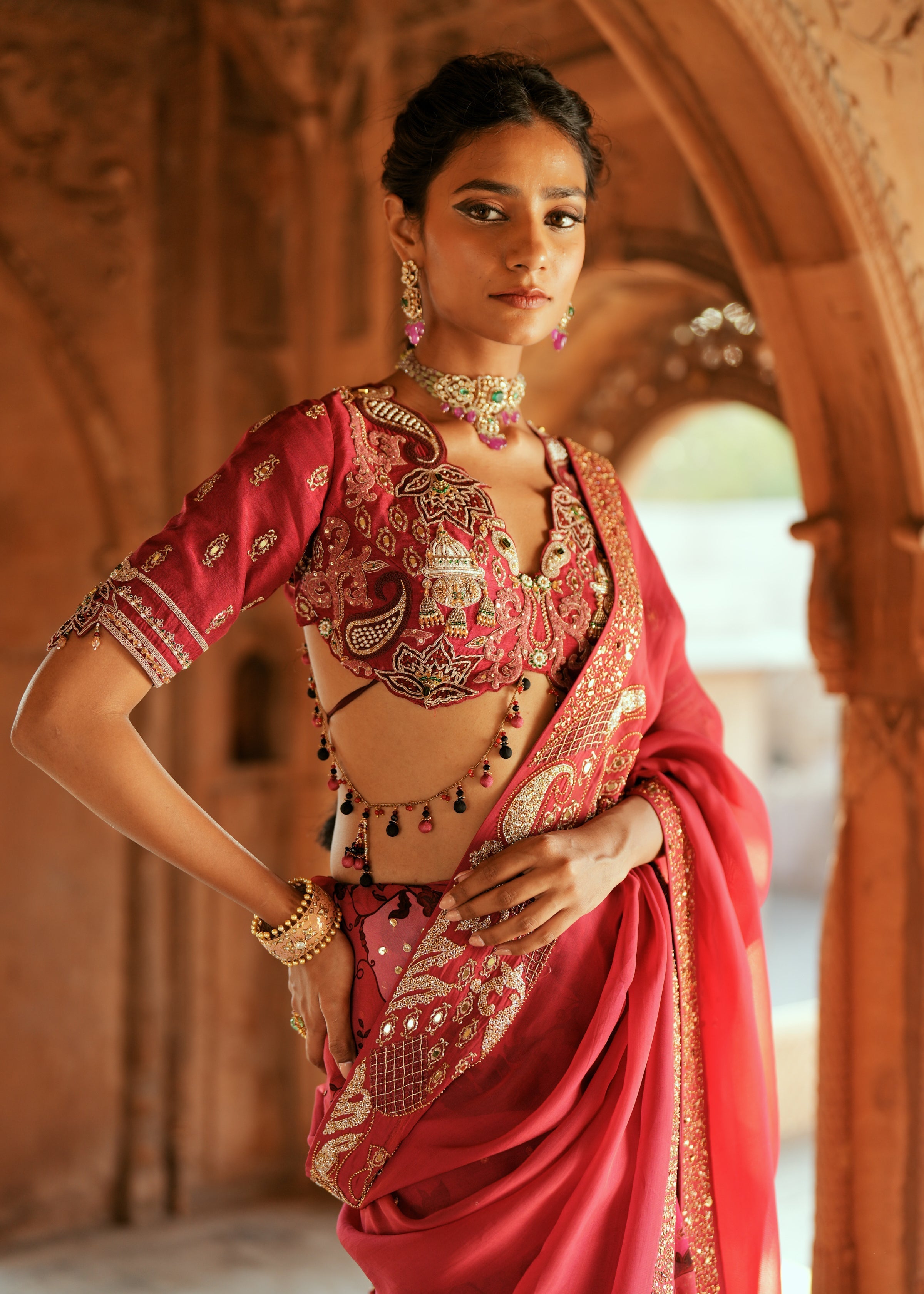 Natasha Luthra in Lilac color block embroidered organza saree set