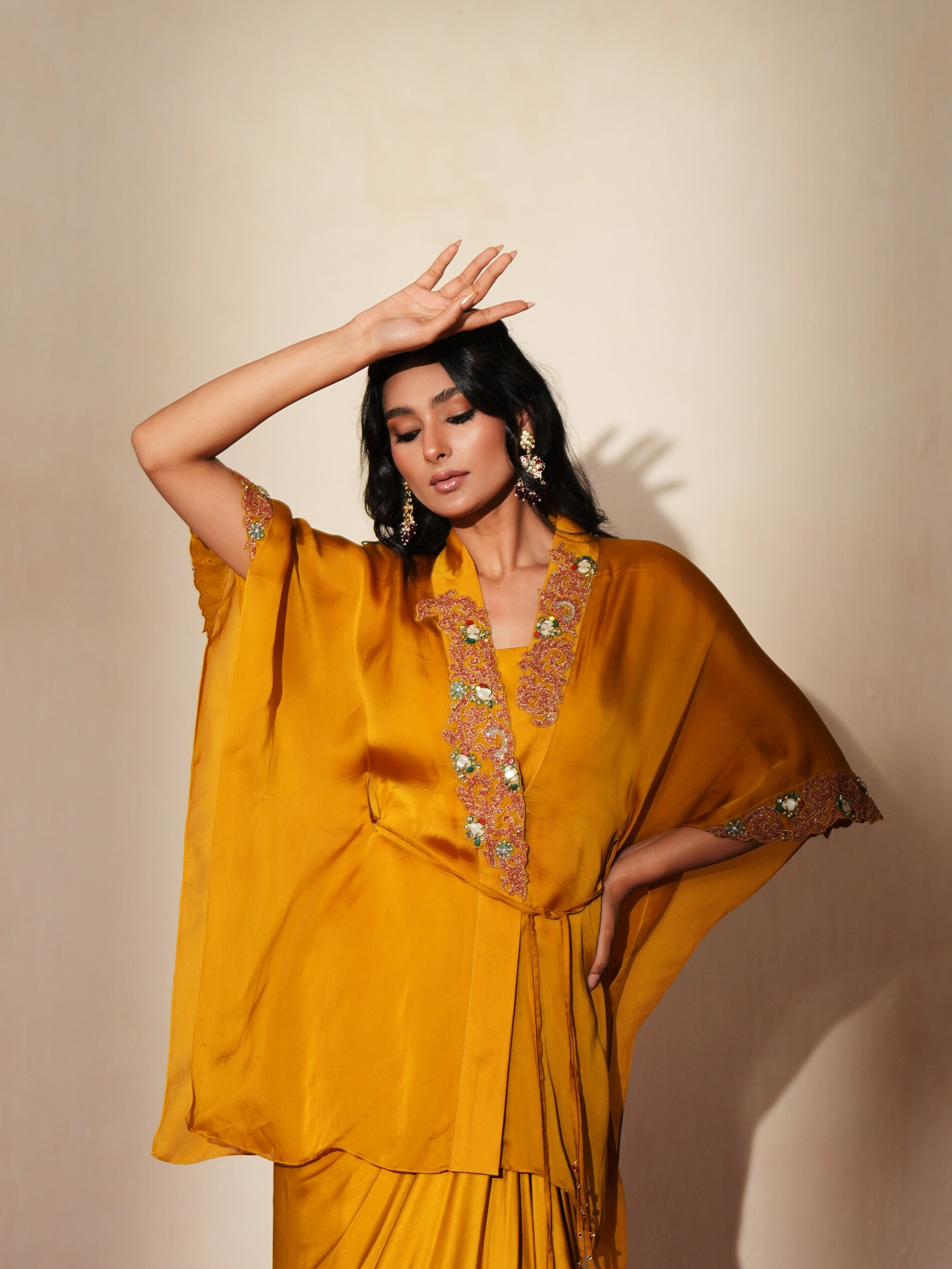 AMBAR GOLDEN YELLOW SILK EMBROIDERED KURTA SET