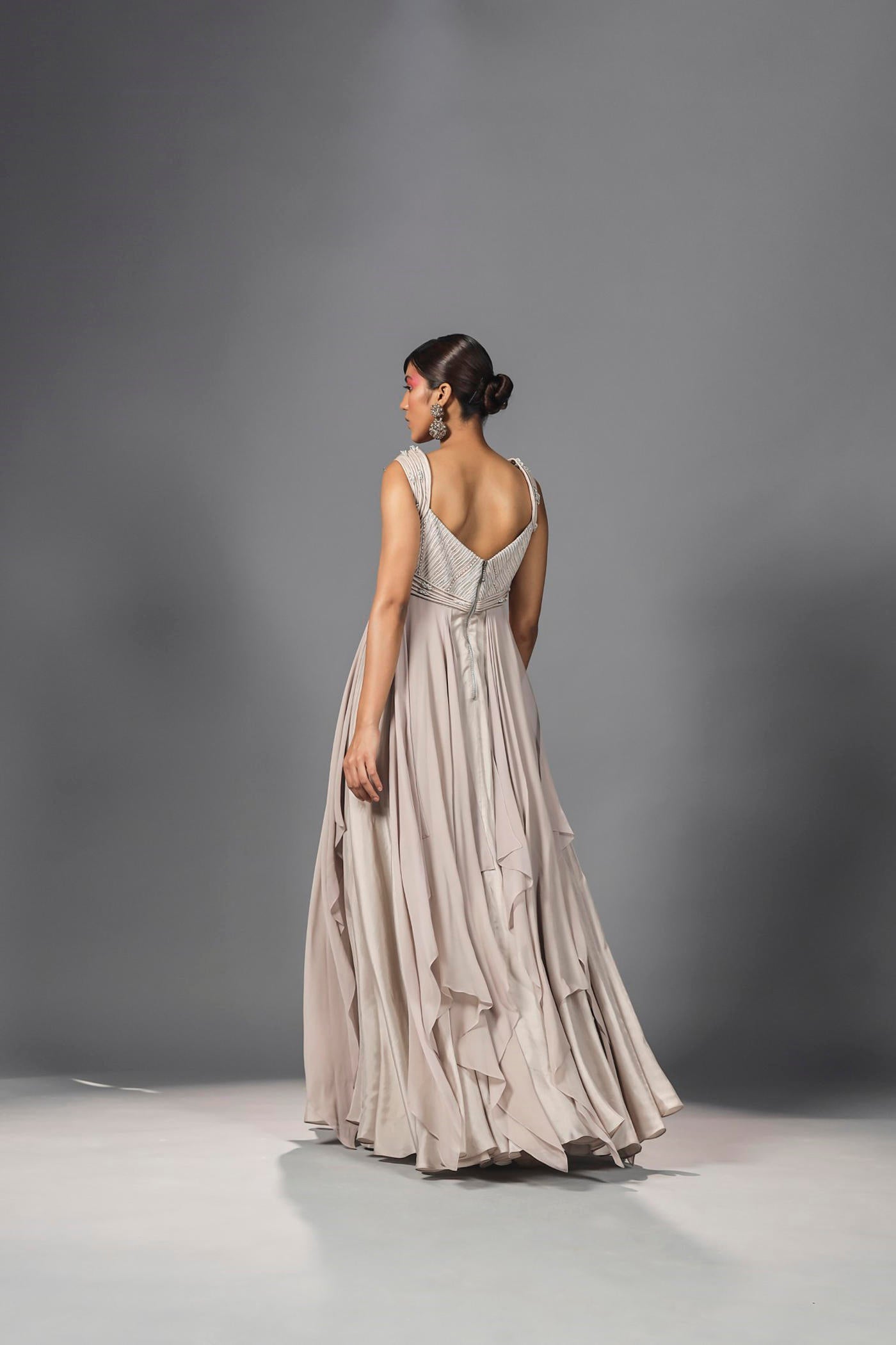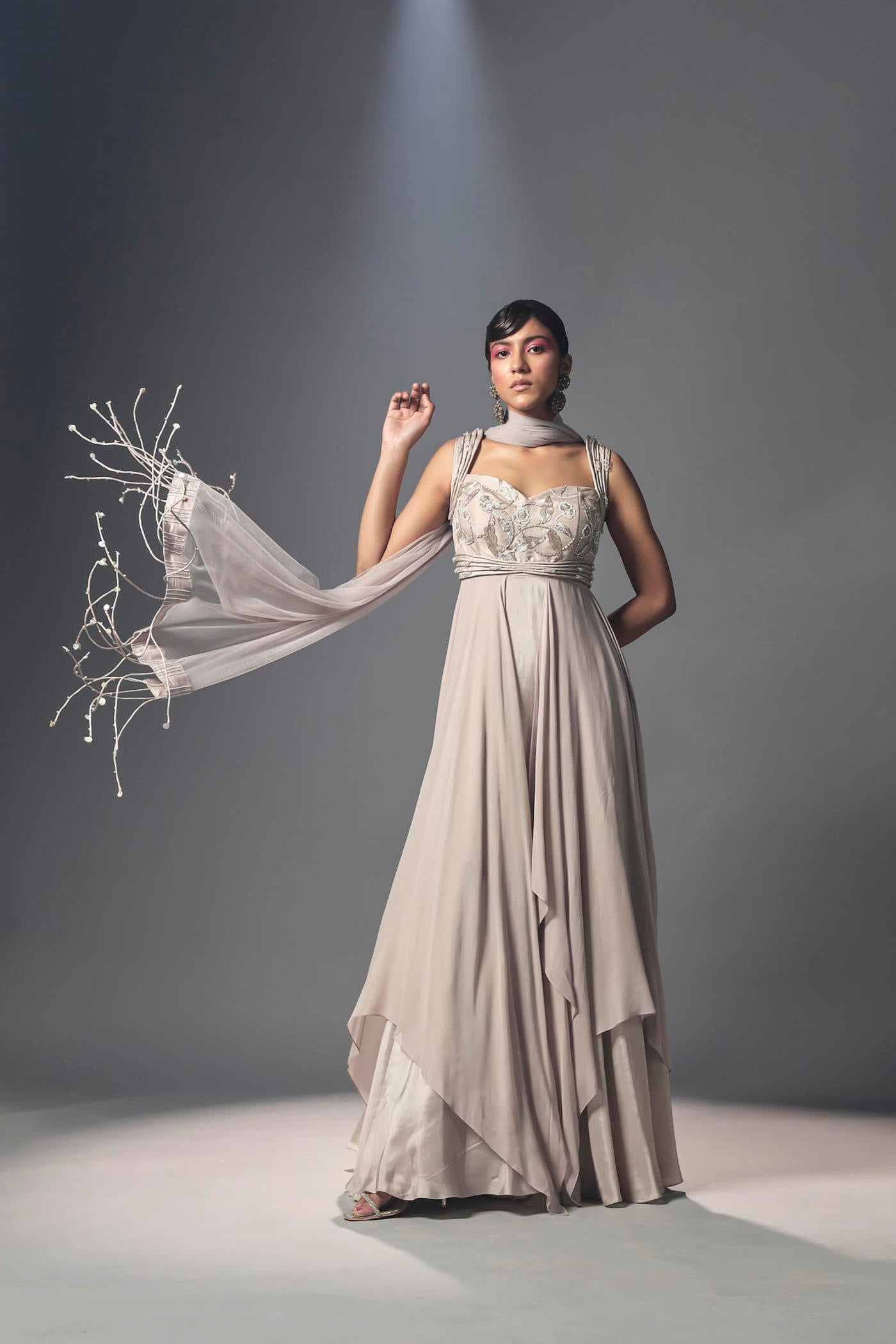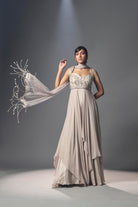 Ecrufarbenes, drapiertes Anarkali-Kleid mit Kordel