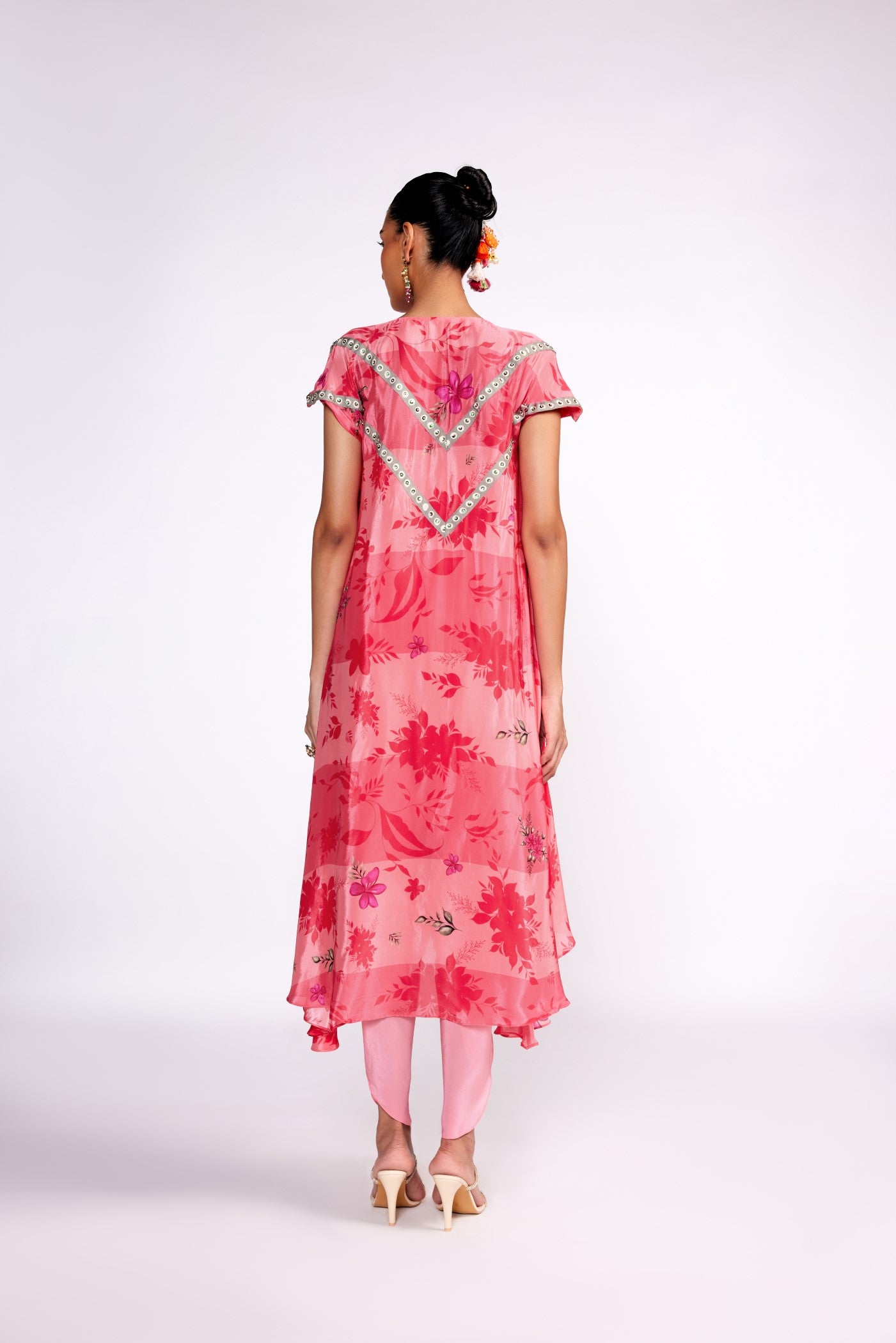 Dieses Set besteht aus einem bedruckten Kaftan mit offener Vorderseite. Gepaart mit einem Seidenbustier und Tulpenhose aus Krepp.