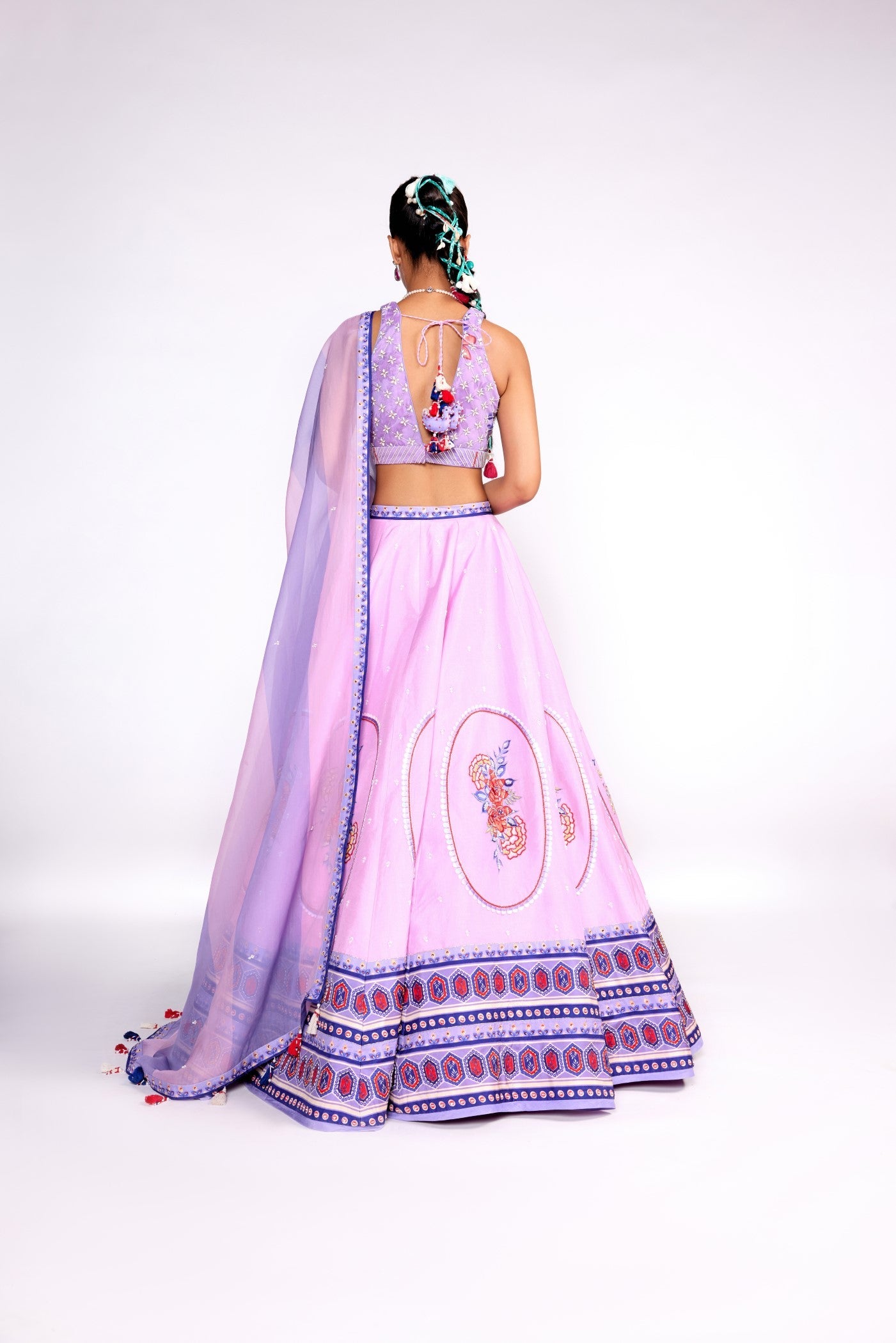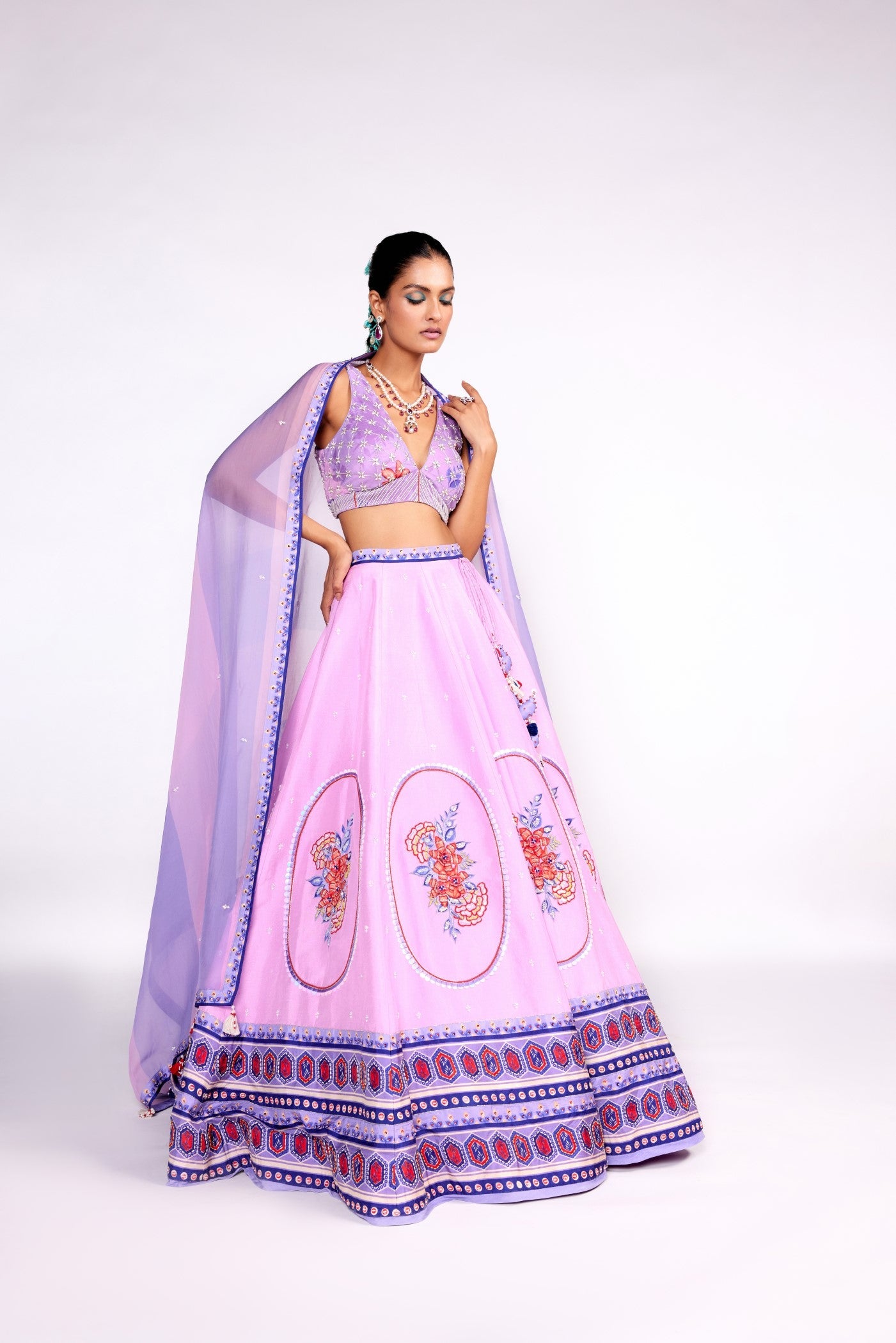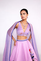 Lila besticktes Lehenga-Set