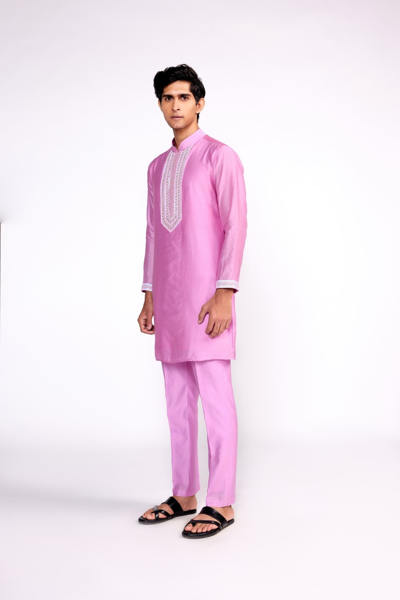 Fliederfarbenes Kurta-Set aus bestickter Seide