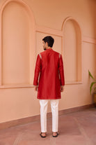 Red dori and hand embroidered silk kurta set