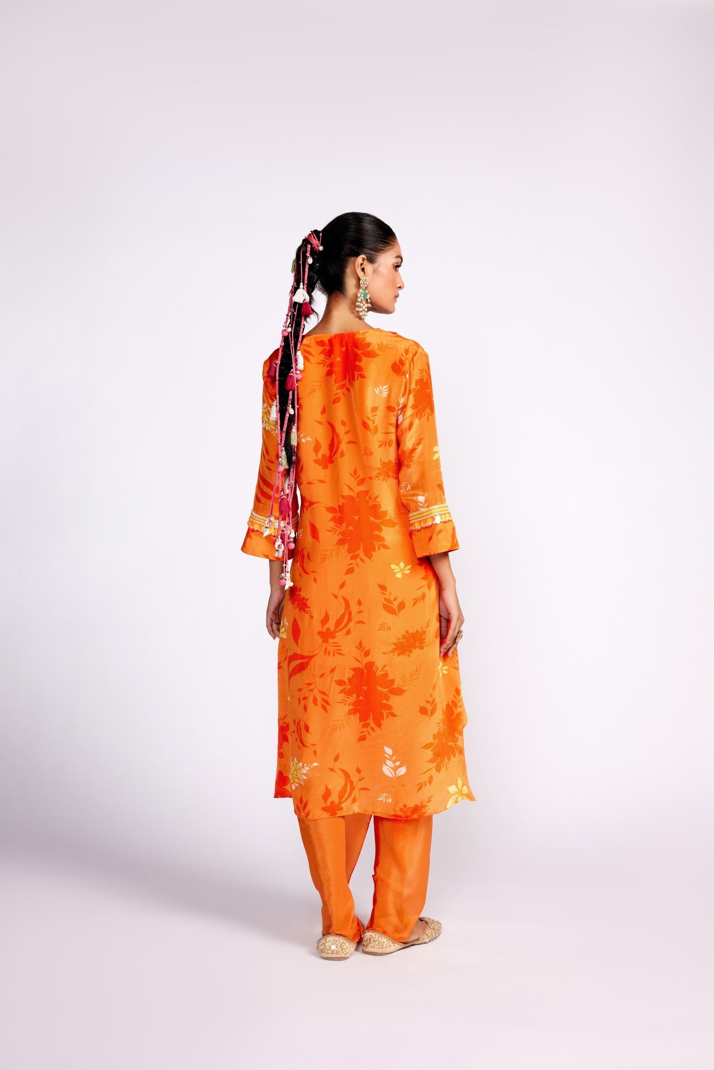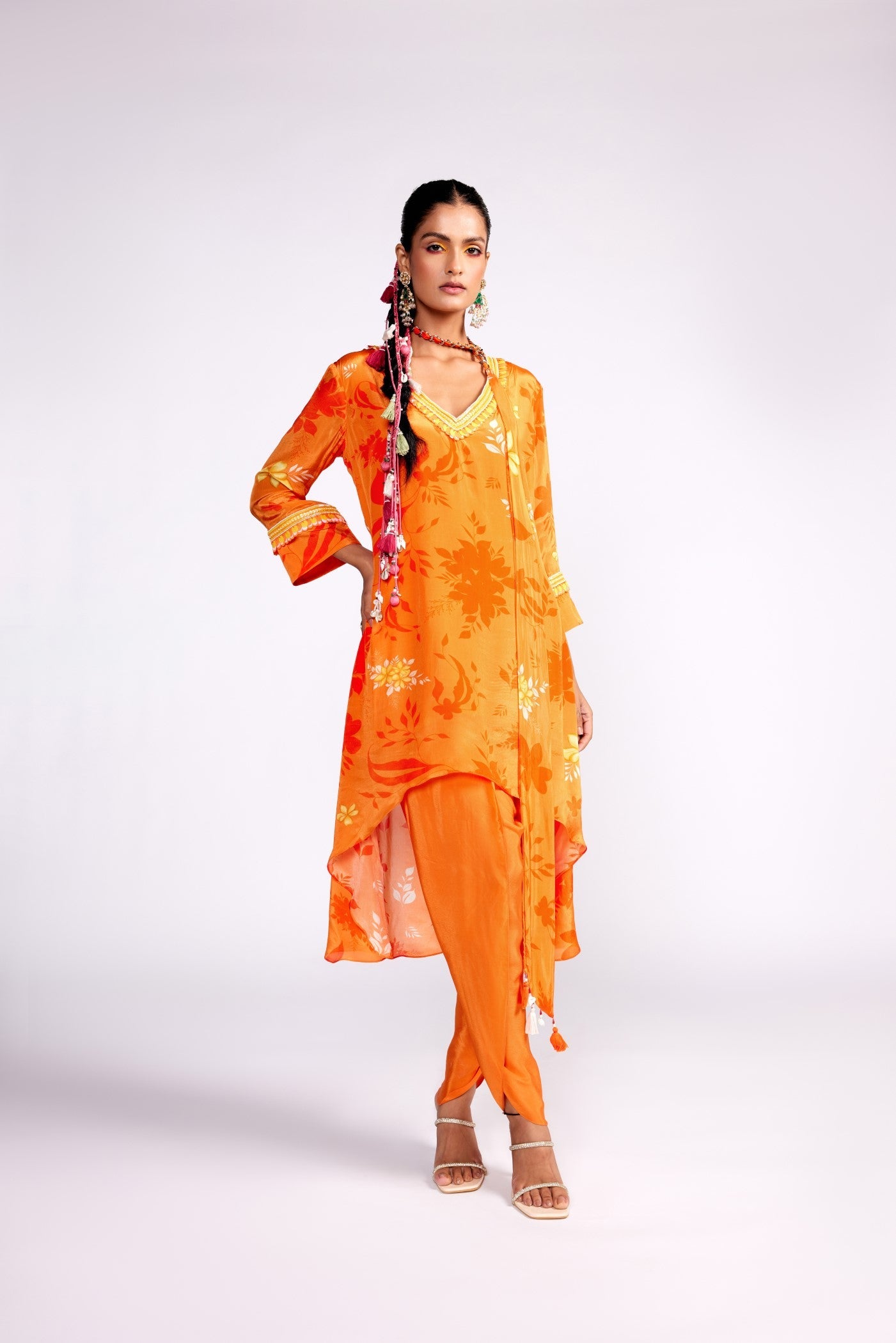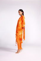 Tangerine orange assymteric kurta set
